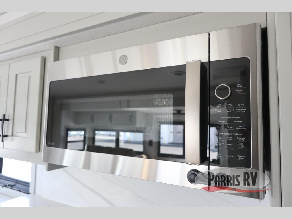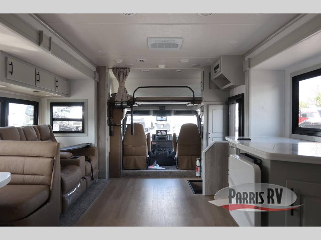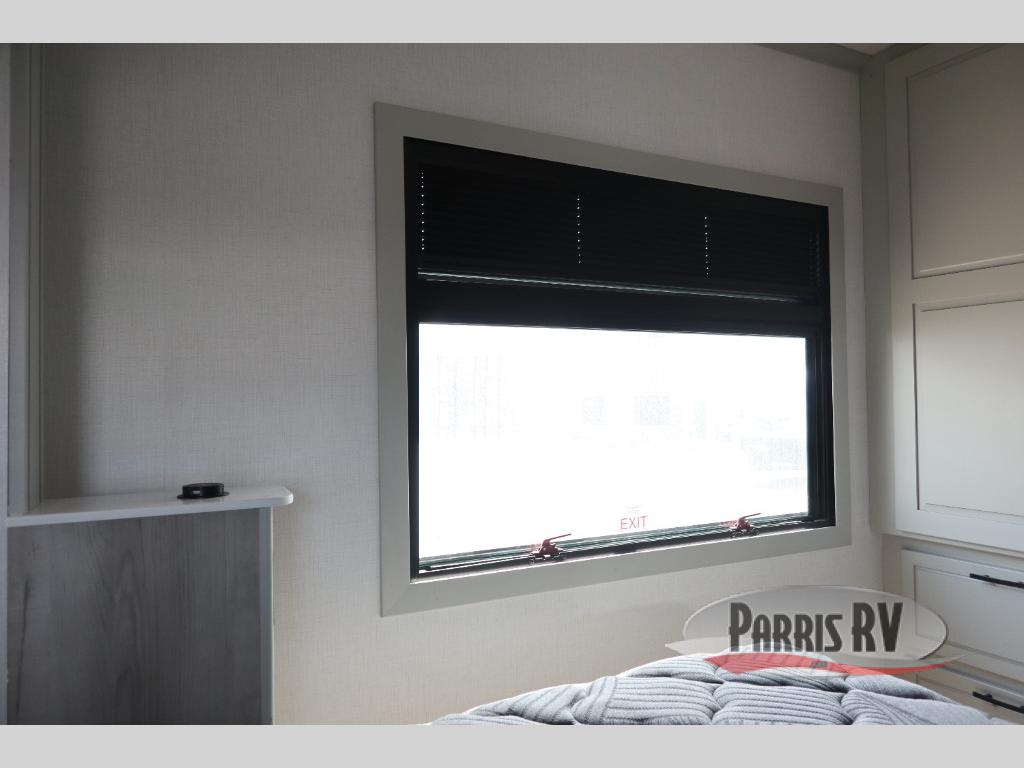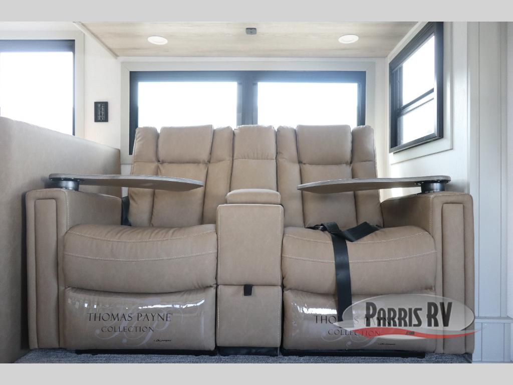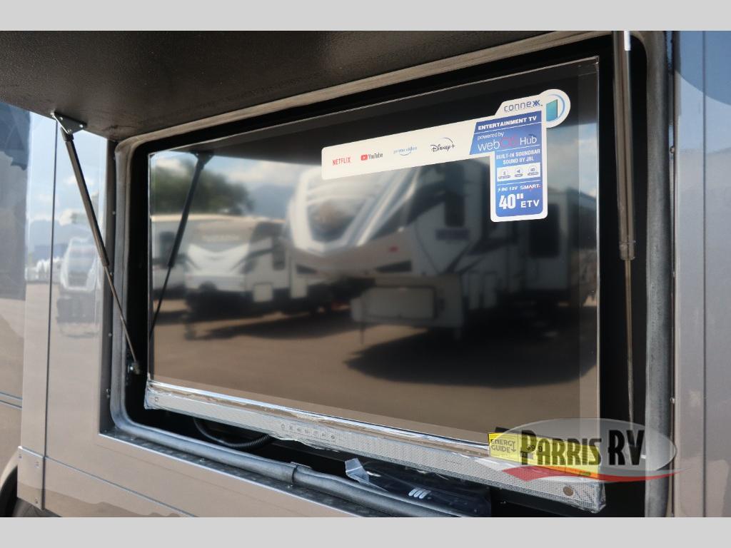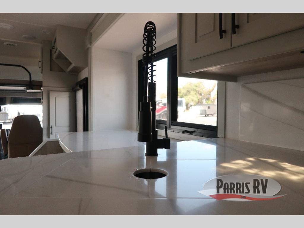 Nothing will stop you from experiencing first-class adventures with this DX3 Super C diesel motorhome! The king-size bed in the rear private bedroom will deliver the ultimate relaxation each night, and the bedroom 32" LED TV will let you watch your favorite movie before bed. Step foot into the Polymarm shower with a glass shower door each morning and welcome the morning sunlight through the shower skylight above. After you are all ready for the day, you can grab a quick breakfast from the pantry or spend a little more time preparing a full meal on the three-burner range.