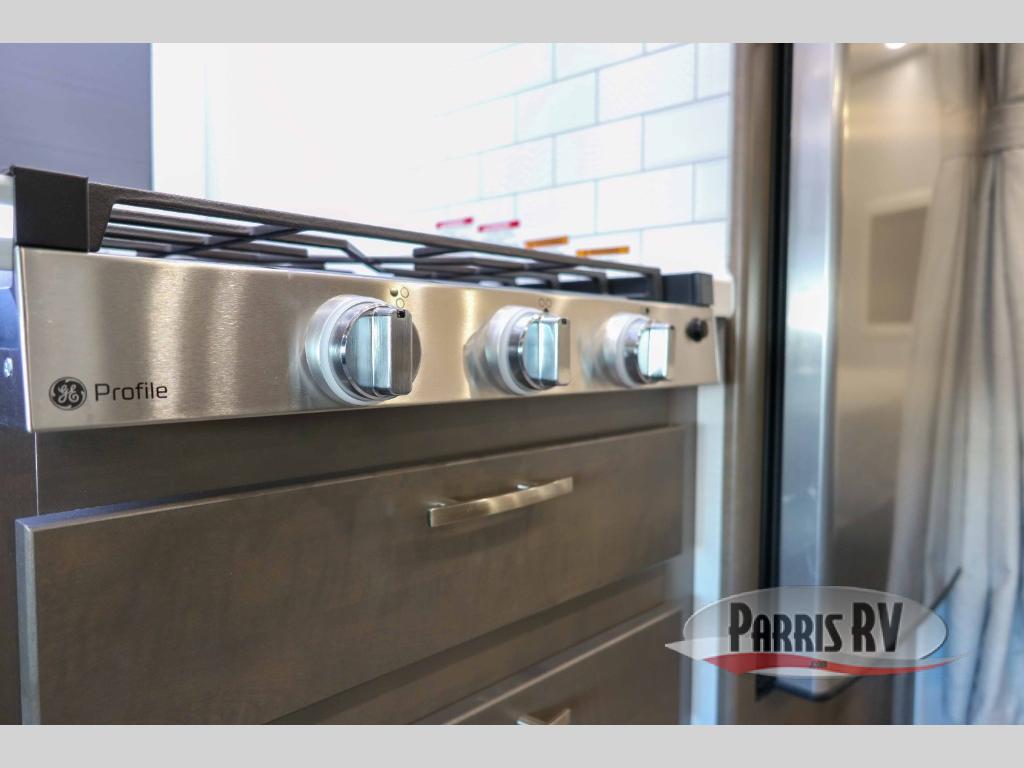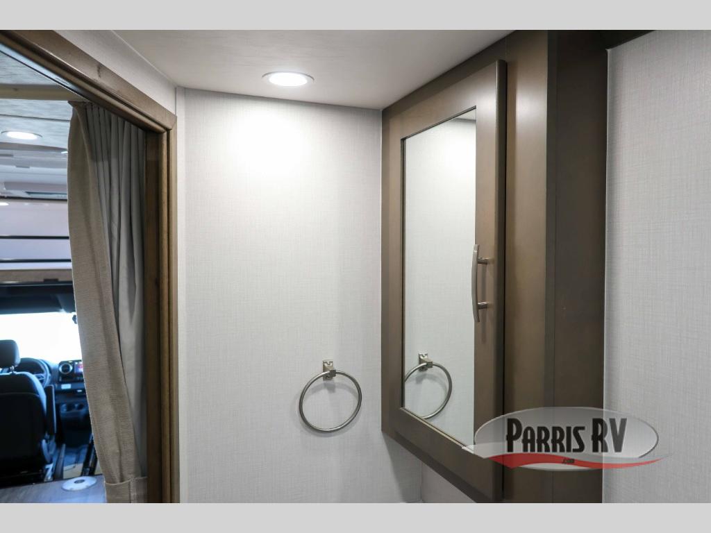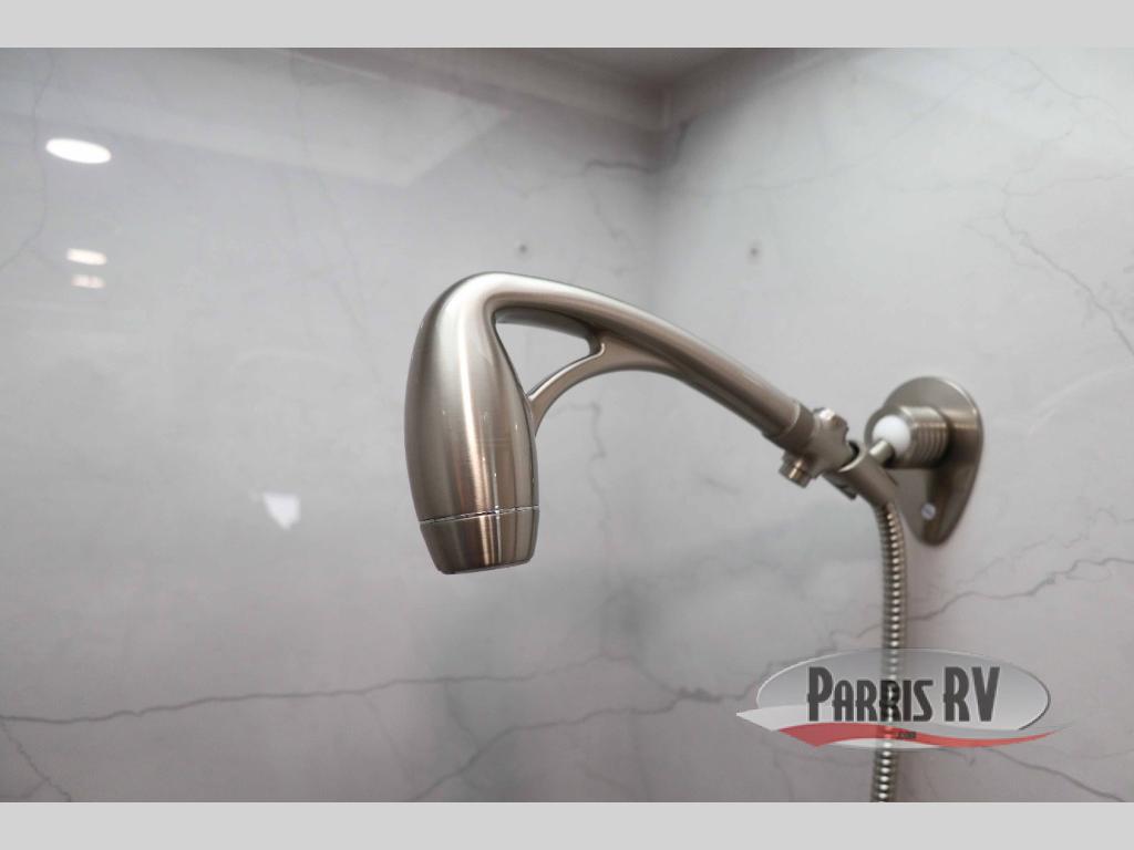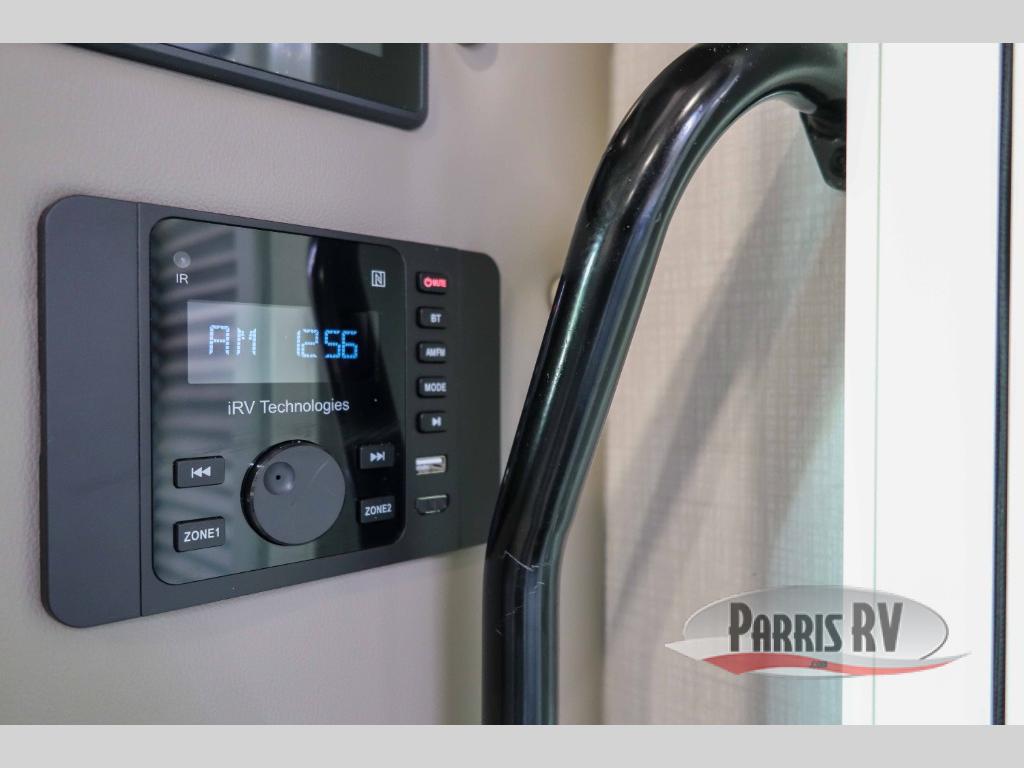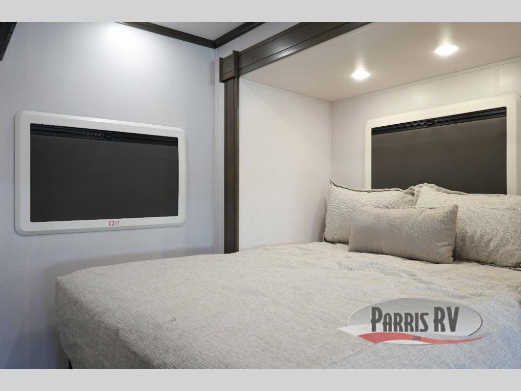 Take this motorhome on your greatest adventures yet! Start each morning feeling well rested after sleeping on the corner queen bed then head to the rear corner bathroom to freshen up in the shower with an Oxygenics body spa RV shower head and a skylight above for added headroom and natural lighting. Now that you're ready for the day, you can grab some eggs from the 8 cu. ft. two-door compressor-driven refrigerator and fry them up on the three burner cooktop, then enjoy them at the booth dinette. The kitchen also has a countertop extension for more meal prepping space and a convection microwave. This unit also includes a living room 32" LED Smart TV and a 32" LED smart TV across from the bed. You could even switch things up by replacing the booth dinette with an optional 3-seat power recliner, and adding a cab over bunk option!