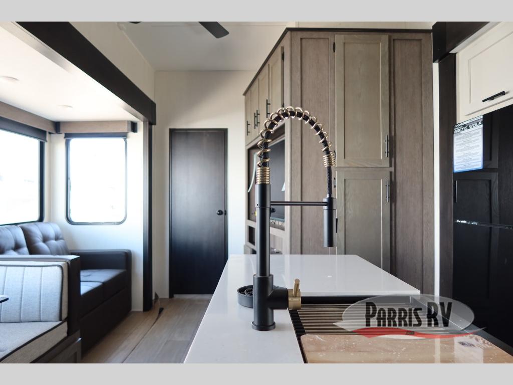 You'll have the very best time tackling outdoor adventures with the Forest River Cherokee Arctic Wolf fifth wheel! Each model has been constructed with a “ToughBend” rigid skirt metal design, Leash Latch pet safety technology, an outside shower with hot/cold water, and a 1x engineered wood “SuperTruss” roof structure with 3/8" decking for added durability. There is also an automatic leveling and stabilization system, plus 12V heat pads on all holding tanks with help withstand colder temperatures. Inside, you'll love the solid surface kitchen countertops, along with a carpetless floor design, and fully adjustable, slow rise, blackout roller shades. The on-demand tankless hot water heater will provide endless hot water and the central A/C unit with Quick Cool will ensure your comfort during those hot summer camping months. There are many more stand-out features found on these fifth wheels; check them out!