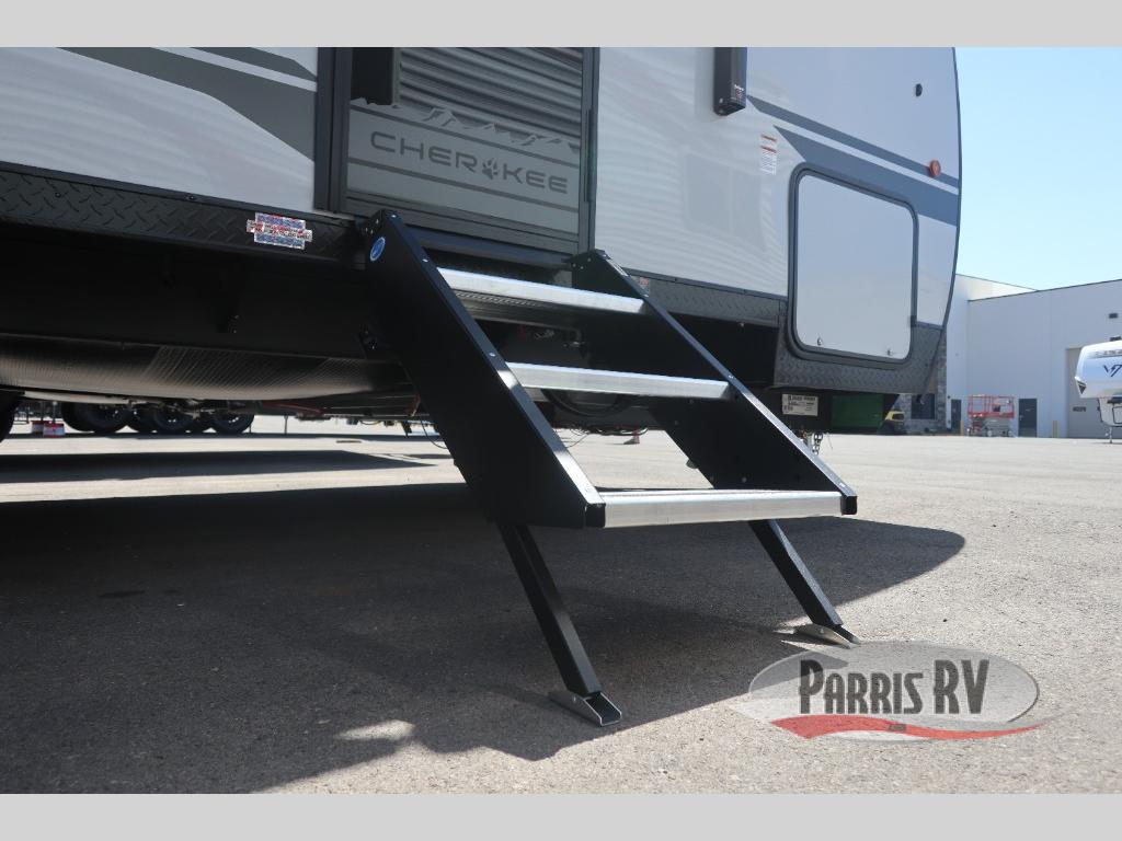 You will undoubtedly love this Cherokee Grey Wolf Black Label toy hauler! Because of its ability to have up to 15' 2" of cargo space, you can easily load up the ramp door and head out to your outdoor toy land, and you can bring much more than just your toys since this trailer also comes with exterior storage, a bedside wardrobe, overhead cabinets, an 10-cubic foot refrigerator, and a kitchen pantry. The full bathroom is another feature that is going to allow you to experience a true getaway since you won't need to find public facilities to use while you're gone, and the USB charging stations will allow you to charge your phone inside while you're outside playing.