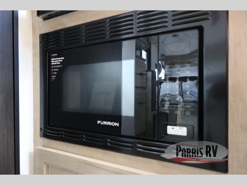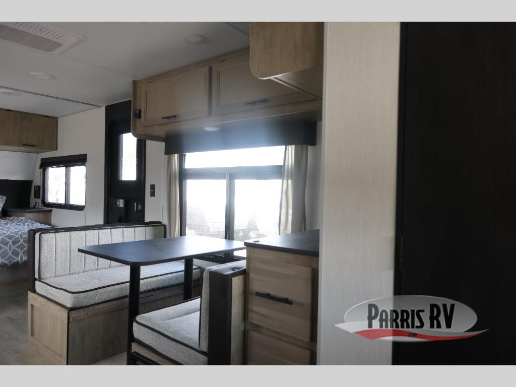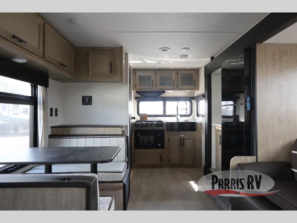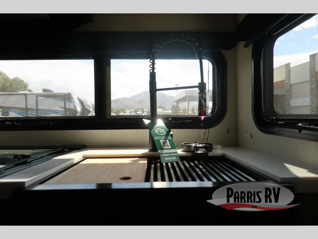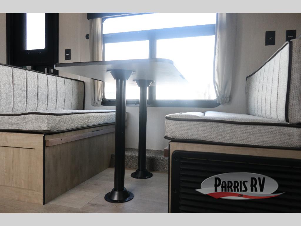 You will love traveling with this Cherokee Grey Wolf Black Label in tow. This is a great unit for a couple or family as the booth dinette and sofa can both be used for added sleeping for children or quests if needed. There is a comfortable RV king bed up front that you will love for a great night's rest with storage space for your clothing. An air fryer is available for cooking inside, and the rear corner bath includes a tub/shower, toilet and sink. A nice 15' awning creates more outdoor living space to enjoy protected from the elements. You can also add a TV on the exterior as it has an outside TV mount.