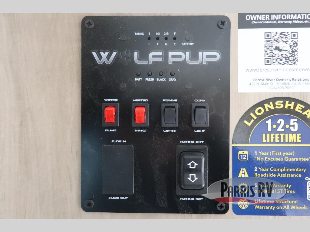 Each one of these Forest River Cherokee Wolf Pup travel trailers and toy hauler are lightweight and easy to tow! They are fully self-contained with ample tank capacities, an abundance of storage space, and filled with at home amenities. The full bath and kitchen amenities will make life at the campground easier than ever, and the outdoor patio awning will provide an inviting outdoor space!