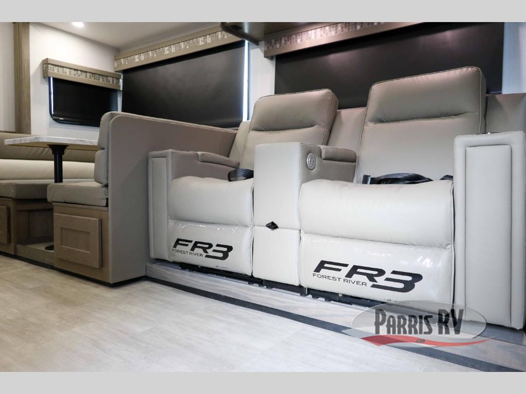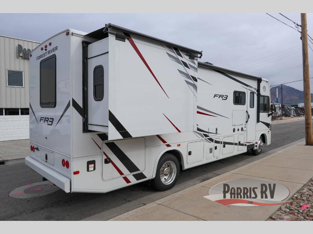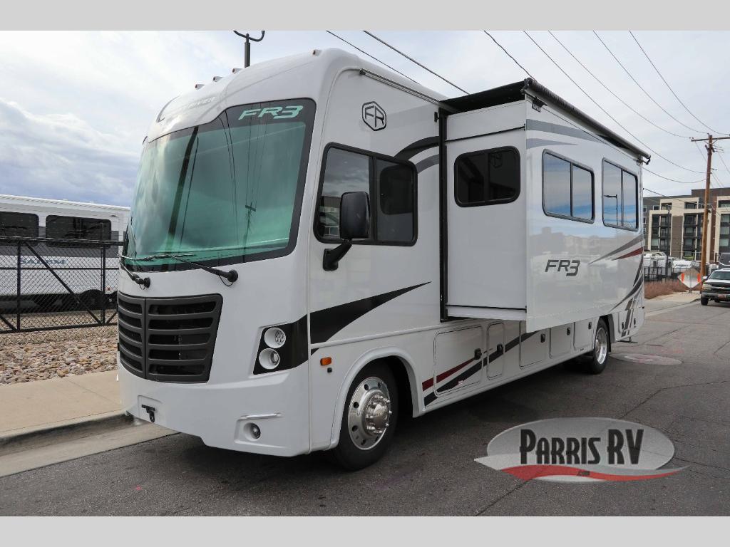 With each FR3 Class A gas motorhome by Forest River, you will find an easy-to-drive coach with a spacious interior allowing you to gather with friends and family with convenience and style found throughout! Each is built with vacuum-bonded construction, a one-piece fiberglass roof with extended rain spouts, a steel firewall and A-pillar extension, Bi-LED headlamps and lower LED fog lights, and grey Rotocast storage boxes with drains, plus more! Inside, you will enjoy black hardware, appliances, plumbing fixtures, and a glass shower door frame. Plus, you will also find a stainless steel kitchen sink with a bamboo cutting board and roll-up dryer, heavy-duty full-extension ball bearing drawer guides, dual-access dinette storage with doors, and nightstands with charging stations to keep your cellphones ready for whatever is next. Make your selection today!