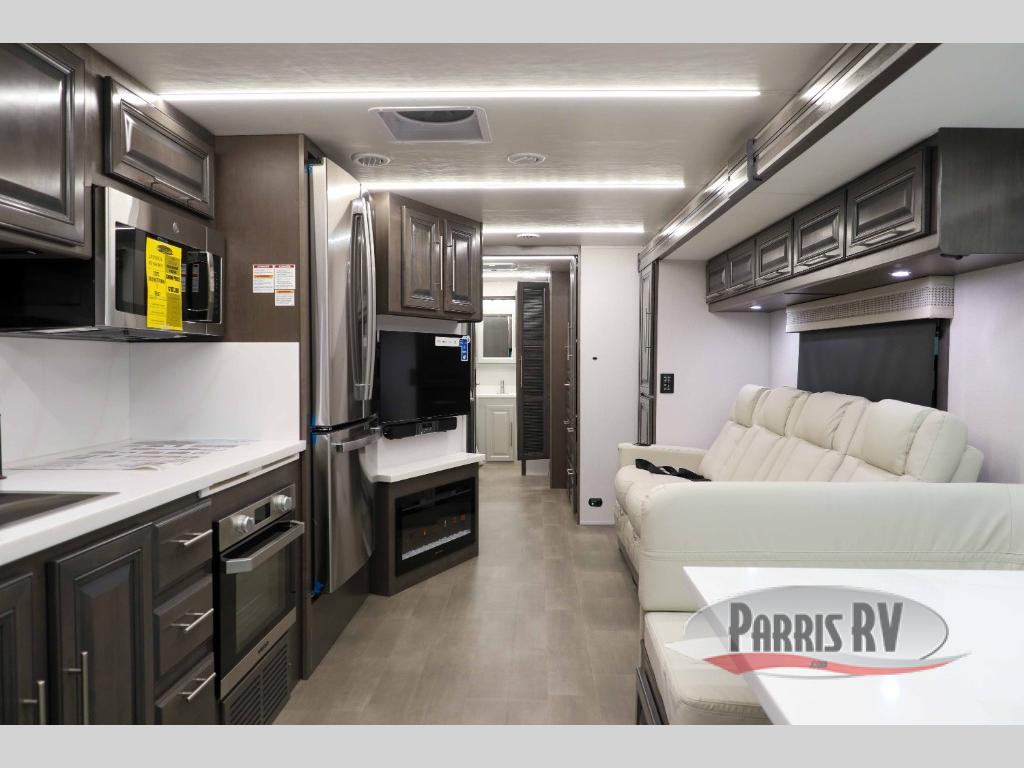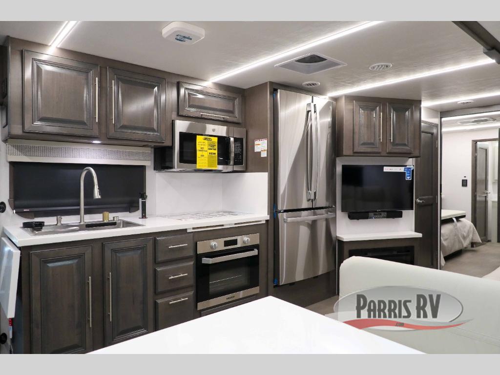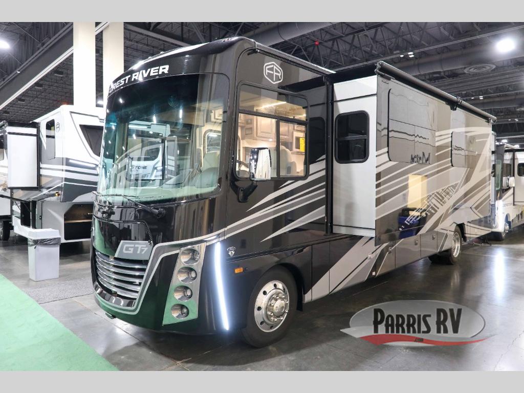 Start exploring your favorite destinations with one of these Forest River Georgetown 7 Series Class A gas motorhomes! Their solid surface kitchen countertops and stainless-steel appliances will have you feeling right at home. There are also day/night shades, wood trim around the windows, a clear glass shower door, and more interior comforts. The Arctic package lets you travel in harsher weather, and the automatic hydraulic 4-point leveling system will keep your unit leveled wherever you set up. The construction consists of aluminum framed vacuum bonded floors and gel coated sidewalls, a crowned roof, and high-density block foam insulation built to support adventures in both warm and cooler months! The drive will be just as enjoyable as the destination with swivel driver's seats, a custom cockpit soft touch dash, and a Sony 10" entertainment system!