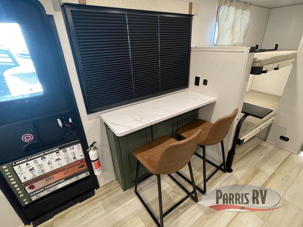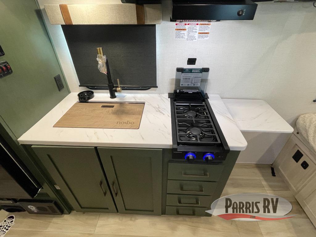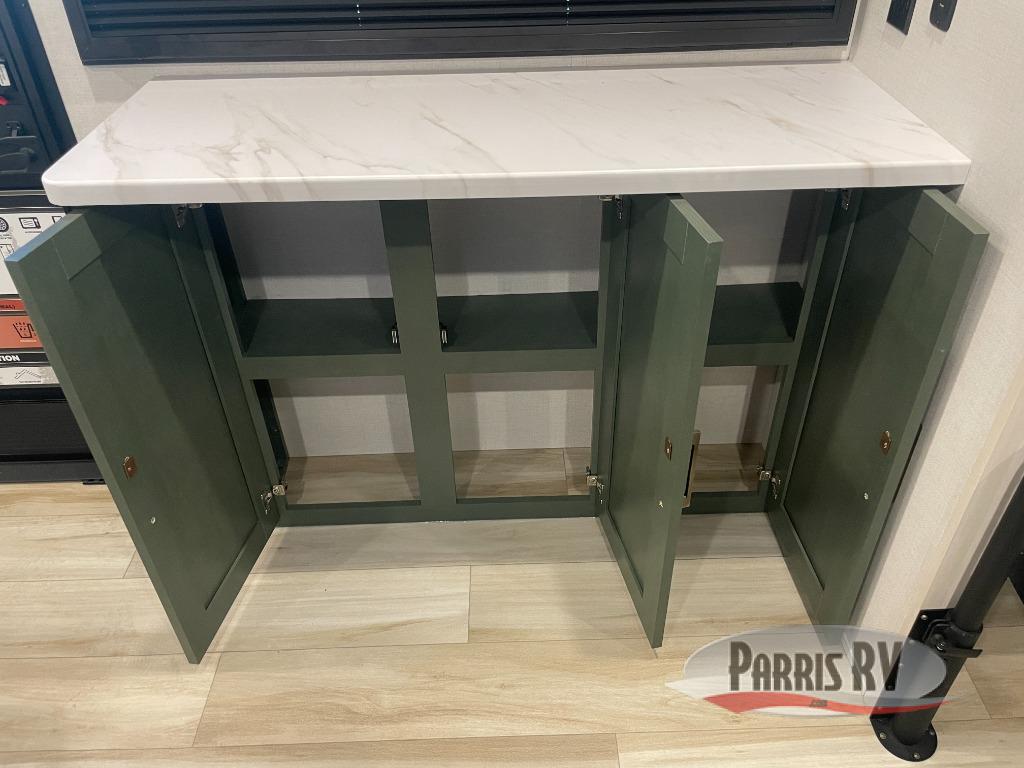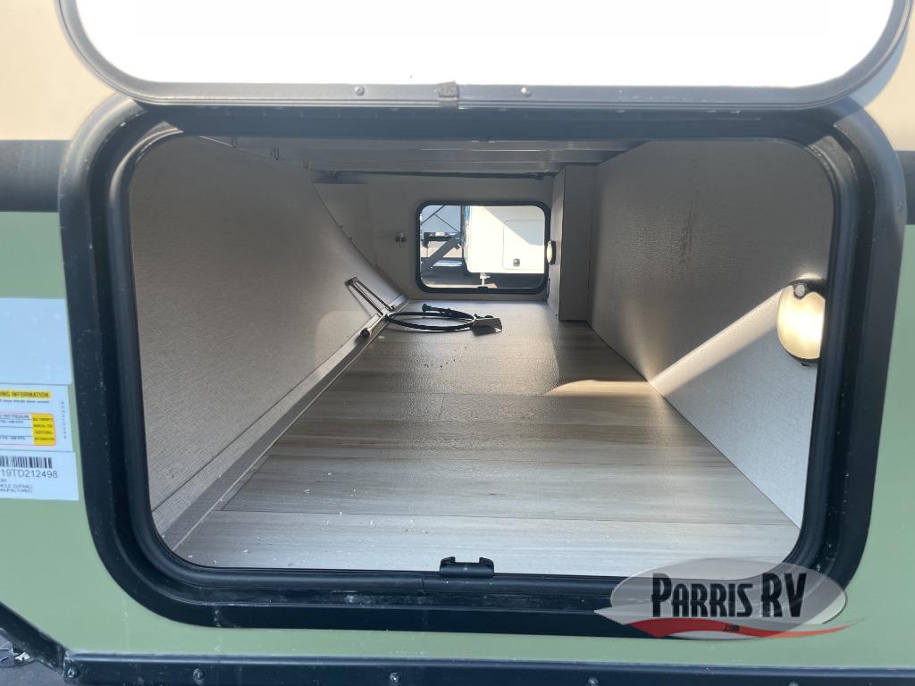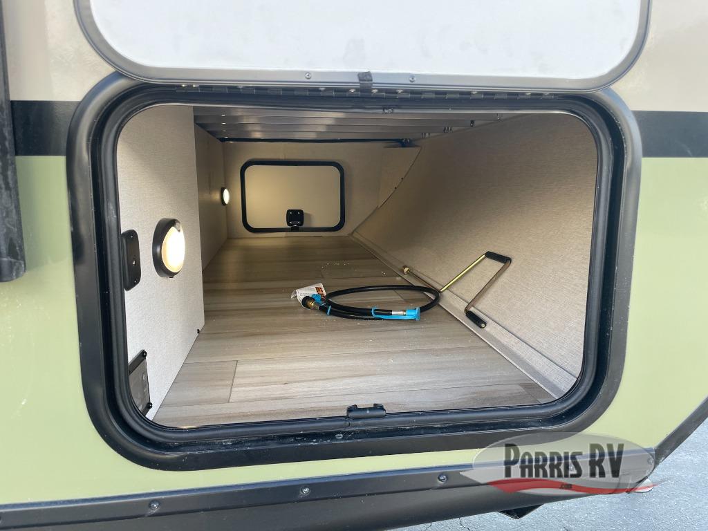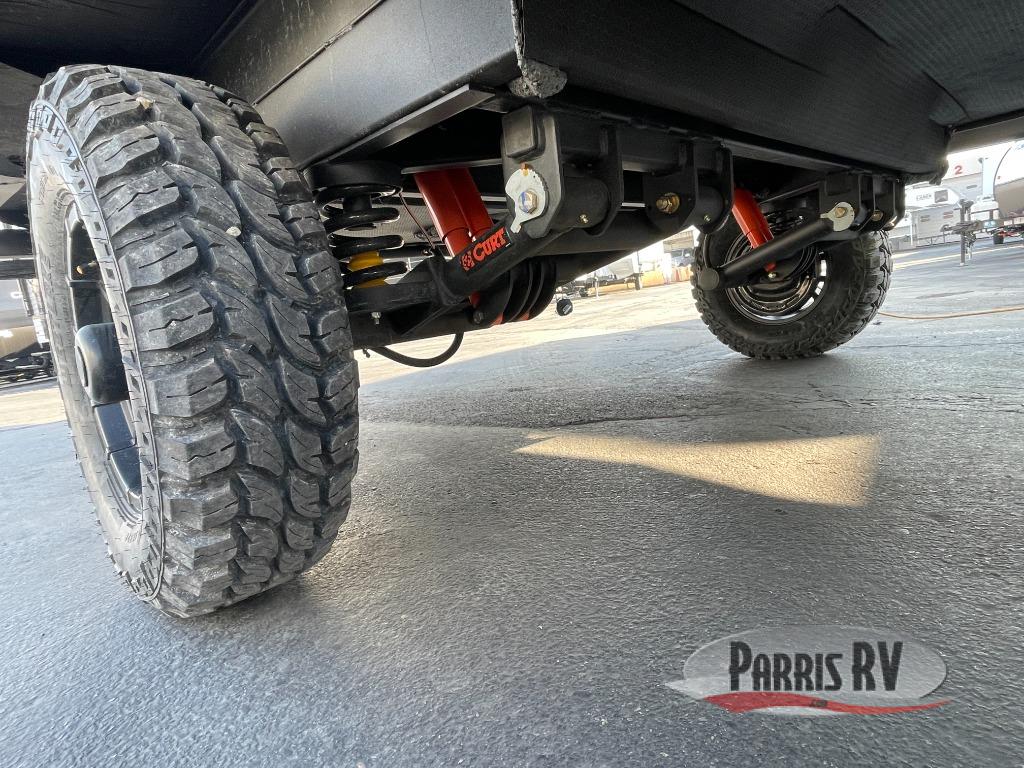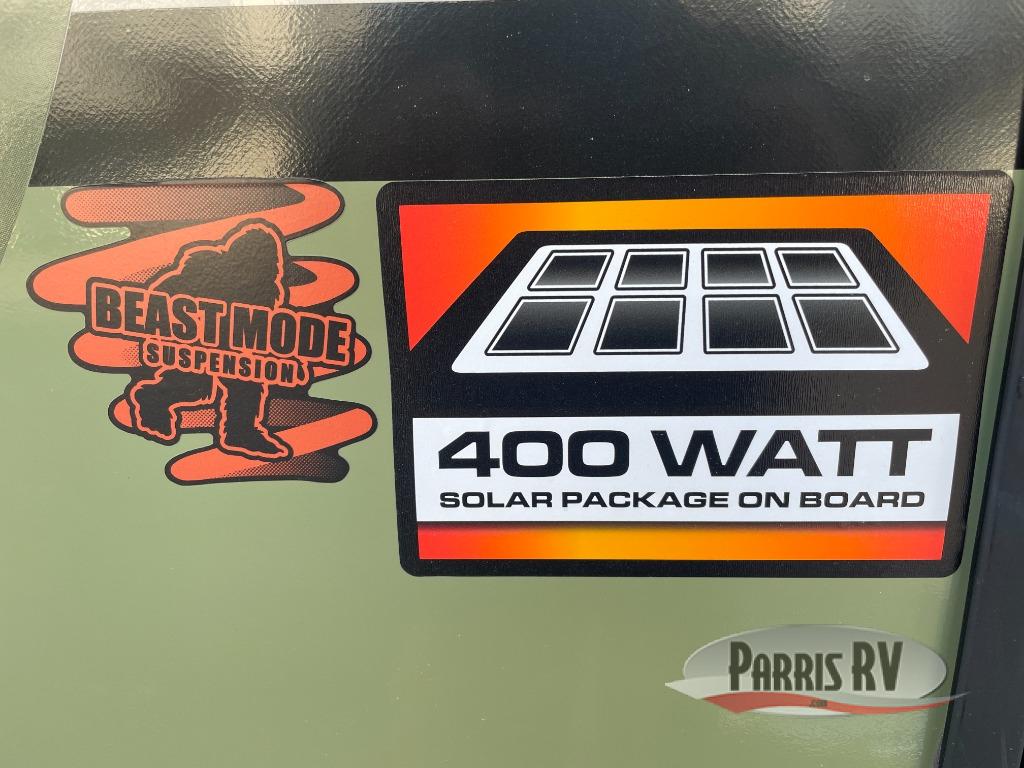 There is much to love about this travel trailer! Starting with the front queen bed to lay your head on at night and the set of 30" x 74" bunk beds for two sleepy travelers. Prepare your best home cooked meals in the fully equipped kitchen then enjoy them at the two chairs with table by the flip-up window. You could even prepare your meals in the great outdoors with the outside kitchen. The full bathroom has everything you need to freshen up after a fun day at the beach. Store all of your outdoor gear in the pass-through storage area with slam latch cargo doors with pass-through lighting too. When the optional Beast Mode Package on this model is chosen, you'll enjoy a 400-watt solar package, a fresh water filter, a Maxxair roof vent cover, plus a Beast Mode independent suspension for better handling.