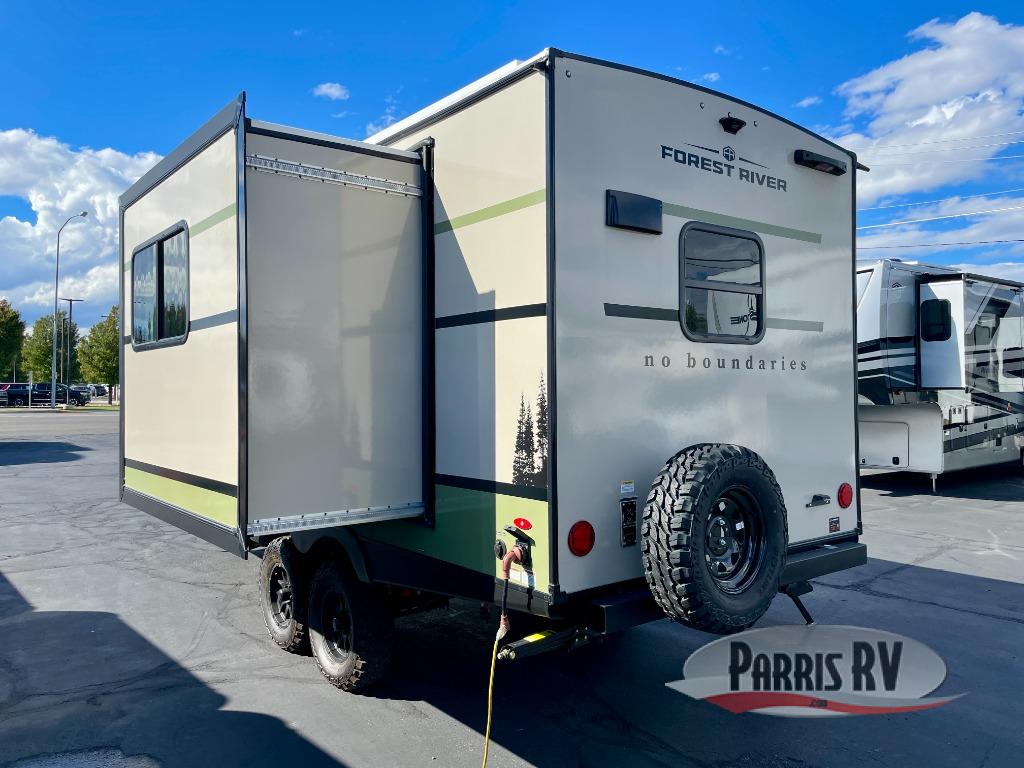 The Forest River No Boundaries travel trailers are exceptionally lightweight and can be towed by 4-cylinder and 6-cylinder tow vehicles! They are perfect for the outdoor enthusiast, and you'll find plenty of storage for your camp gear, personal belongings, and more! Each model is constructed with a welded aluminum structure, Azdel composite panels and a fully walkable PVC roof for added durability. There are a wide variety of floorplans to choose from, including 10 Series (under 2,500 lbs.), 18 and 19 Series (under 5,000 lbs.), plus 20 Series (under 5,500 lbs.). There are no boundaries when camping in these travel trailers!