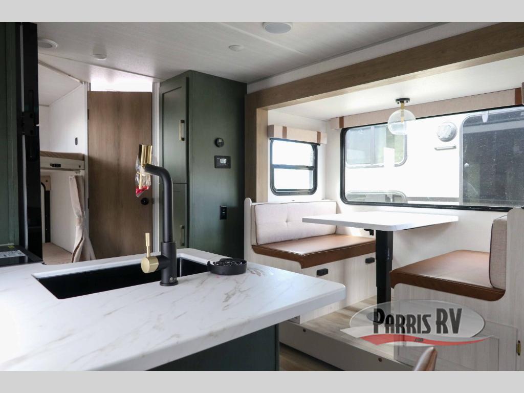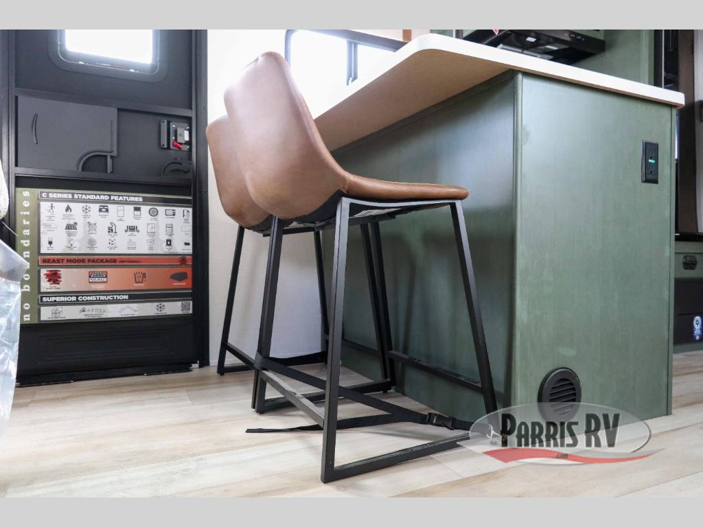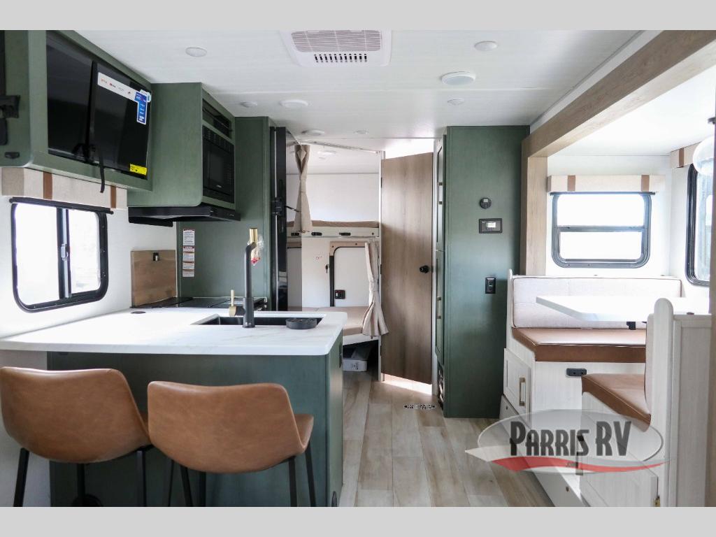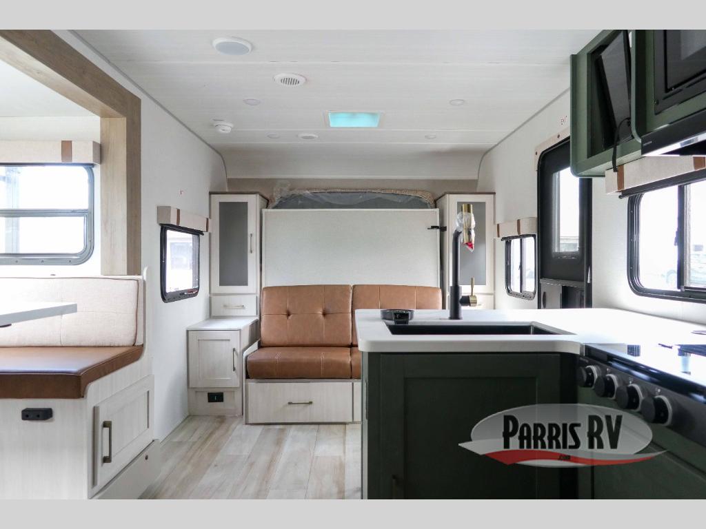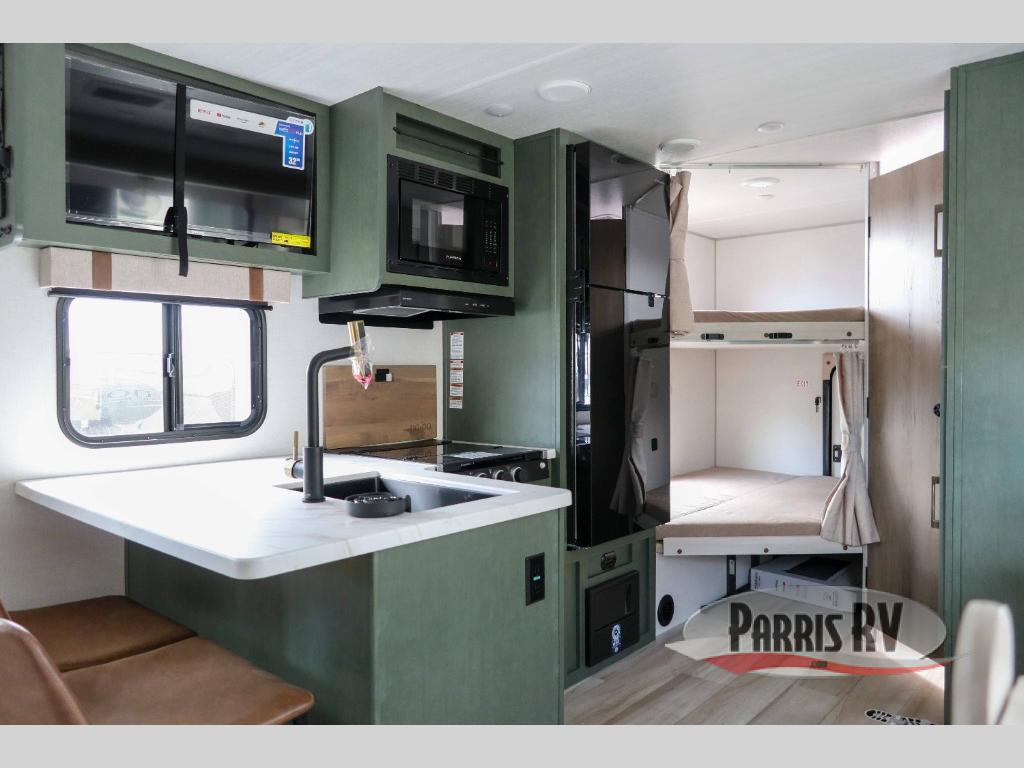 Pack up this very versatile Murphy bed travel trailer and head out to explore! You will love the space saving aspect that a Murphy bed gives you by not increasing the tow length in order to give you a separate bedroom and living space, and you don't even have to make the bed, just fold it up into the wall in the morning! Double-size bunks in the rear corner are perfect for accommodating both children and adults. The kitchen offers everything a cook would need to feed the whole gang and there is even a counter bar area with two stools which will be perfect for breakfast time. There is a booth dinette slide for more dining space, or a place to enjoy a board game or card game when you are inside. When the optional Beast Mode Package on this model is chosen, you'll enjoy a 400-watt solar package, a fresh water filter, a Maxxair roof vent cover, plus a Beast Mode independent suspension for better handling.