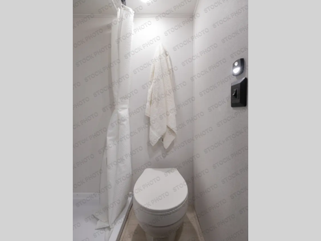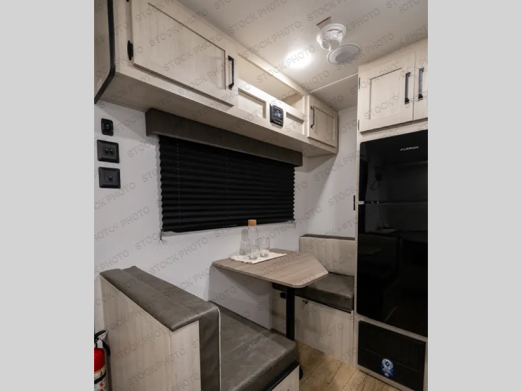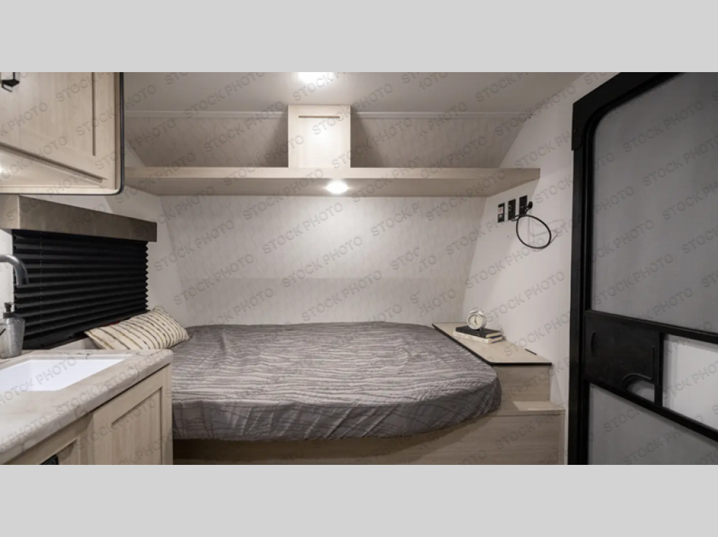 It will be so easy to enjoy camping trips in this single axle travel trailer! There is a front RV queen bed with flip-up storage at the foot of the bed for your belongings, and any additional guests can sleep on the booth dinette with an open shelf above. A full kitchen includes a stainless two burner cooktop and stainless microwave to cook meals each day, and the 4.3 cu. ft. 12V black glass refrigerator will keep your food fresh. And a private bath includes a 24" x 32" shower to clean off after a day outdoors!