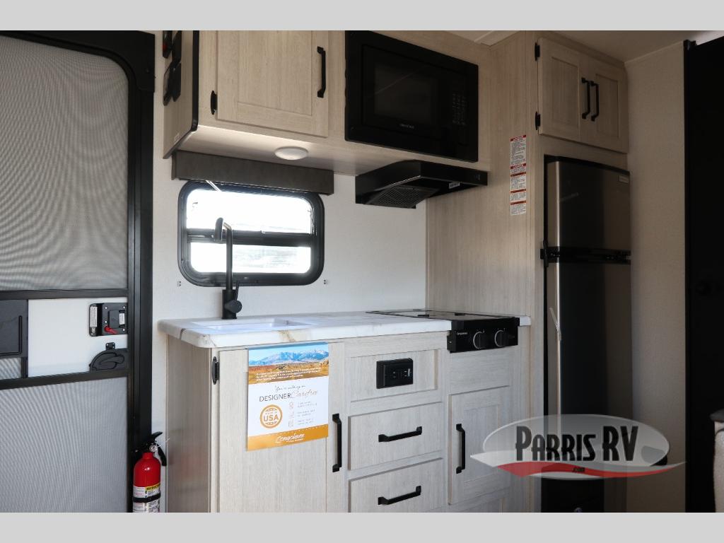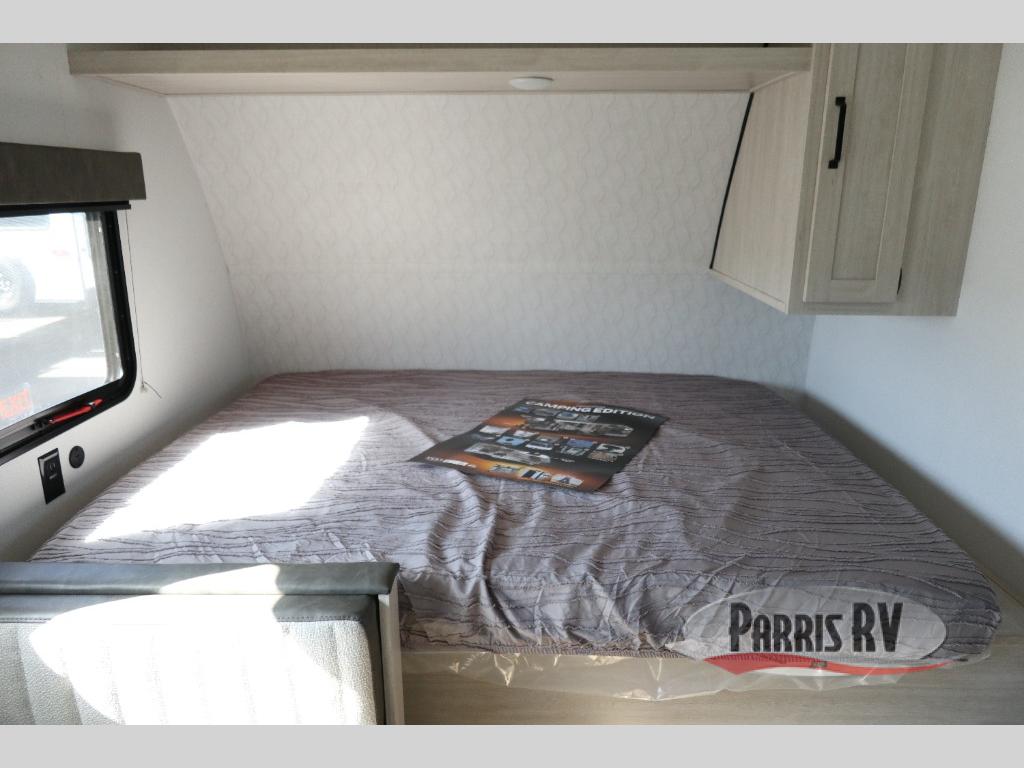 It will be so easy to enjoy camping trips in this single axle travel trailer! There is a front RV queen bed with flip-up storage at the foot of the bed for your belongings, and any additional guests can sleep on the bunk beds and sofa. A full kitchen includes a two-burner cooktop and microwave to cook meals each day, and the 12V black glass refrigerator will keep your food fresh. And a private bath with a toilet and shower will let you freshen up without having to use the camp's facilities!