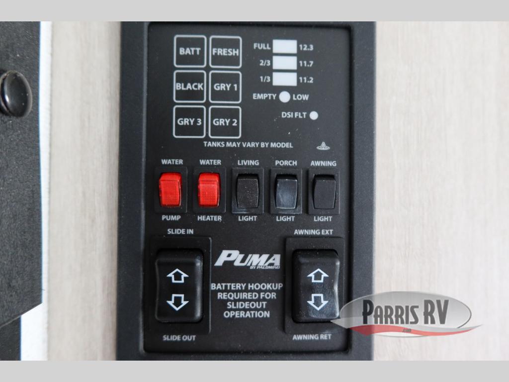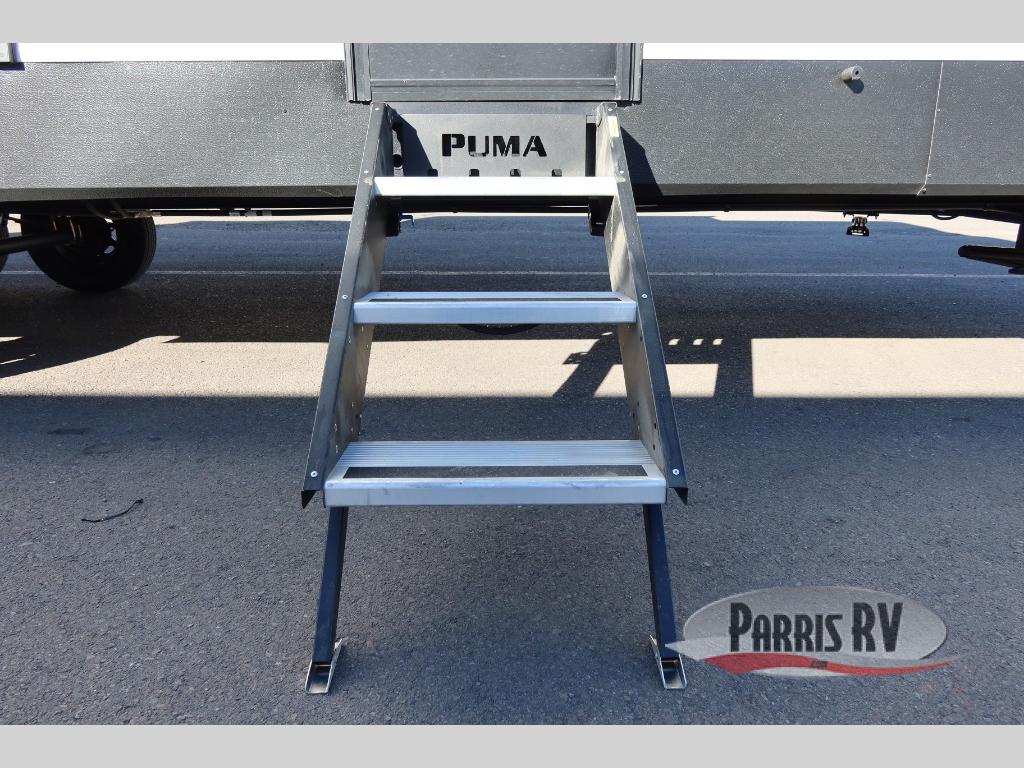 The Puma Camping Edition by Forest River offer an affordable travel trailer for rookie campers or seasoned RVers! They are built with 5/8" tongue and groove plywood flooring and a front diamond plate for added protection. There are also exterior magnetic baggage door latches, back up camera prep, a battery disconnect. Head inside to find Thermofoil countertops with a smooth drop edge, bedroom USB ports and outlets, and pleated shades in the living room.