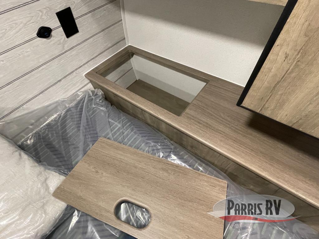 Each Puma Tracks travel trailer by Forest River is constructed with a fully enclosed/heated underbelly for added protection against the elements, plus a fully laminated roof and rear wall for durability. The slam latch baggage doors with magnets will make it easier than ever to pack up your camp gear, and the power awning with LED lights will provide shade during the day and inviting ambiance at night. Head inside to enjoy the roller shades, smoked glass kitchen cabinet doors, stainless-steel sink, and LED lights to keep your space well lit. Some of the available options include a bedroom A/C, a Wi-Fi booster, heated holding tanks, and more!