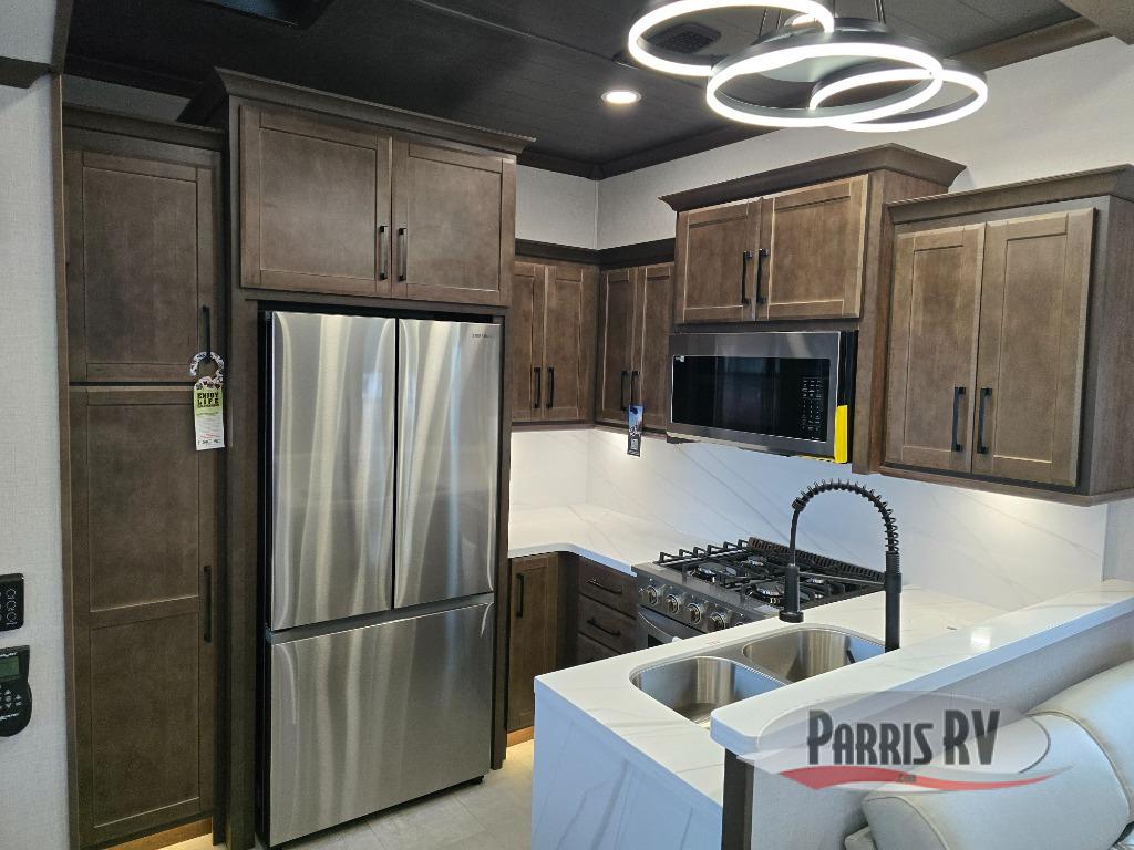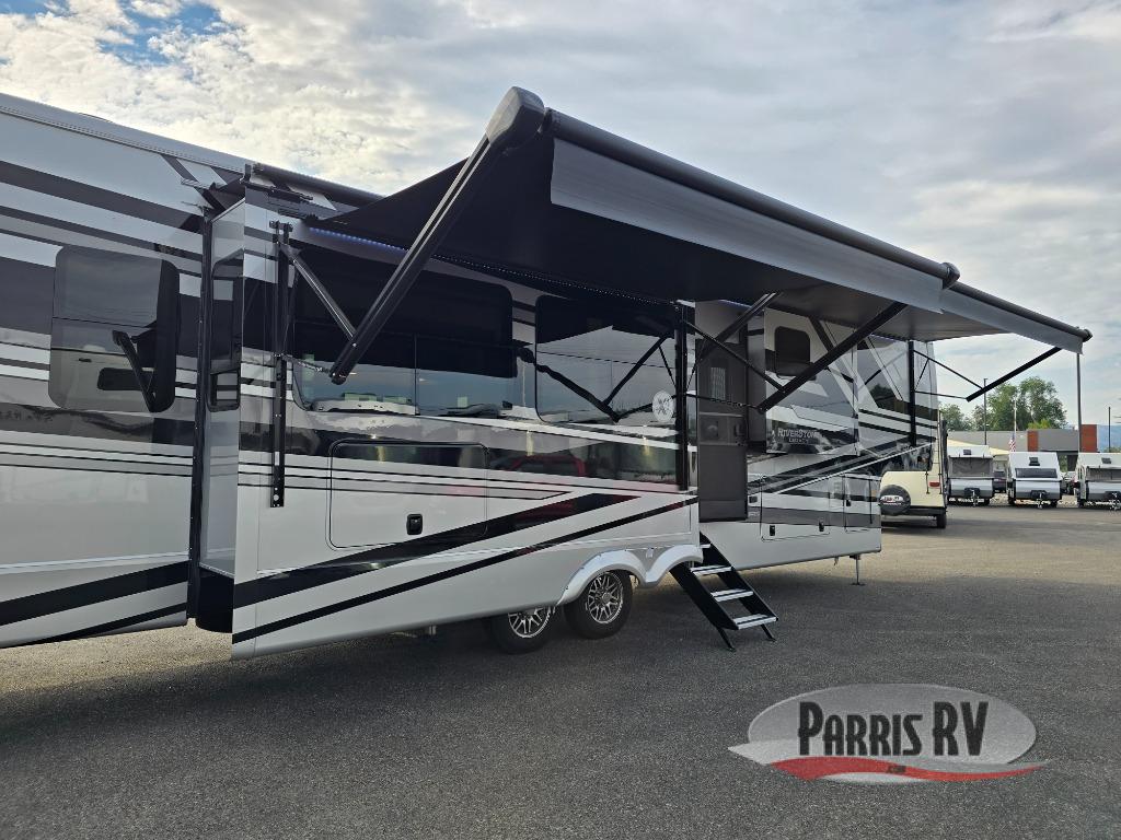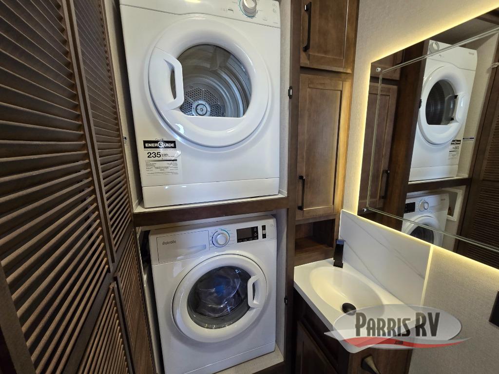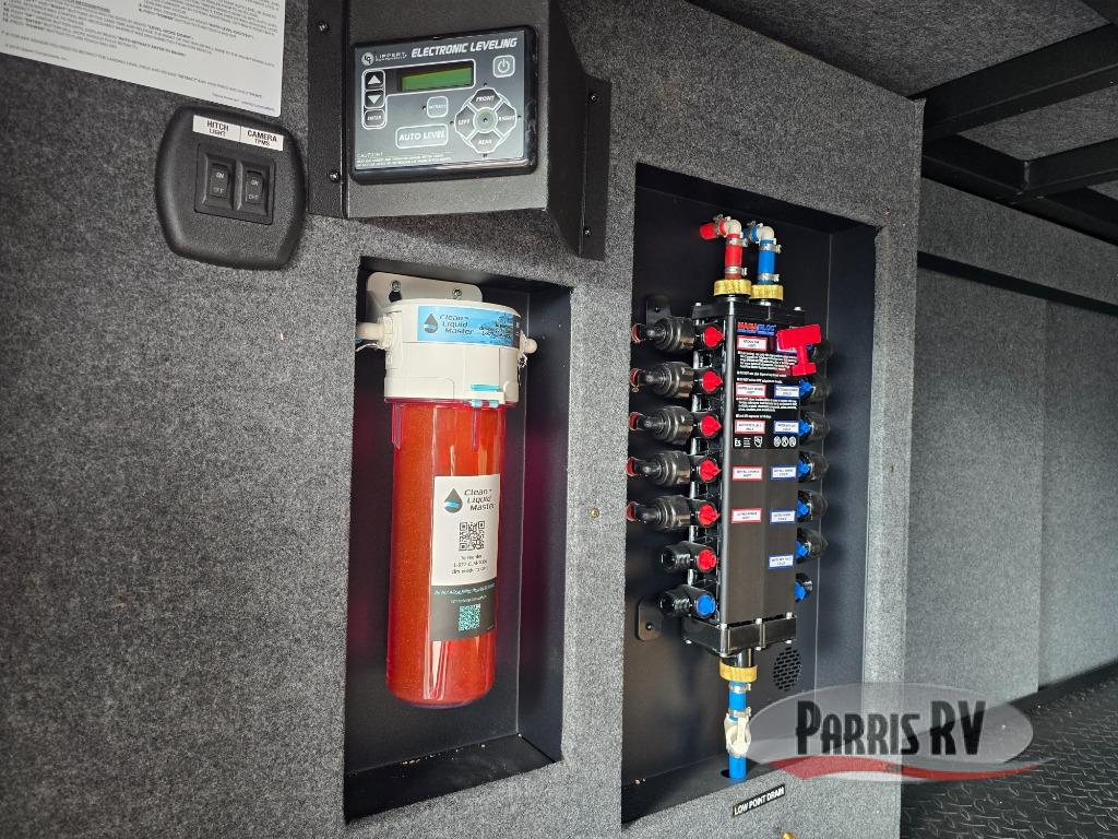 The Forest River RiverStone fifth wheels and toy haulers are luxurious units that have it all! You'll find an automatic six-point hydraulic level-up system to keep your unit in place, and there is preparation for a four-camera observation system. The TravlFi Journey XTR 4G/LTE router and WiFi extender will help you stay connected to the outside world, and you'll never have to overpack again since the Splendid “Astral” stackable washer and dryer will let you clean the small amount of clothes you've brought with you. Another high luxury is the Fischer Paykal dishwasher which will allow you to spend more time enjoying your camp life and less time cleaning up. Each unit is built with an LCI Road Armour suspension system, dual-pane frameless windows, a full docking station, a 200W solar panel, and a BMPro touch control system.