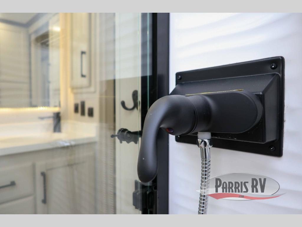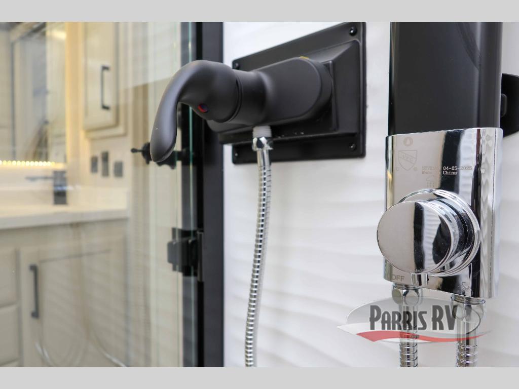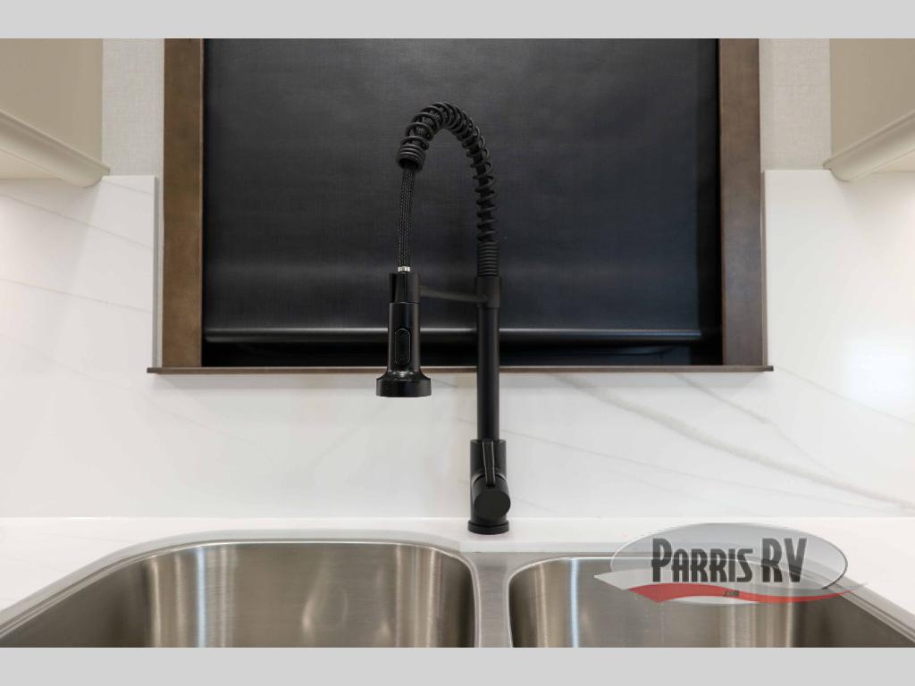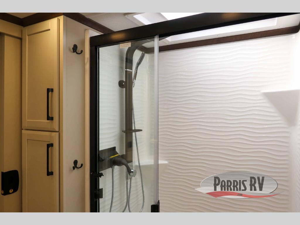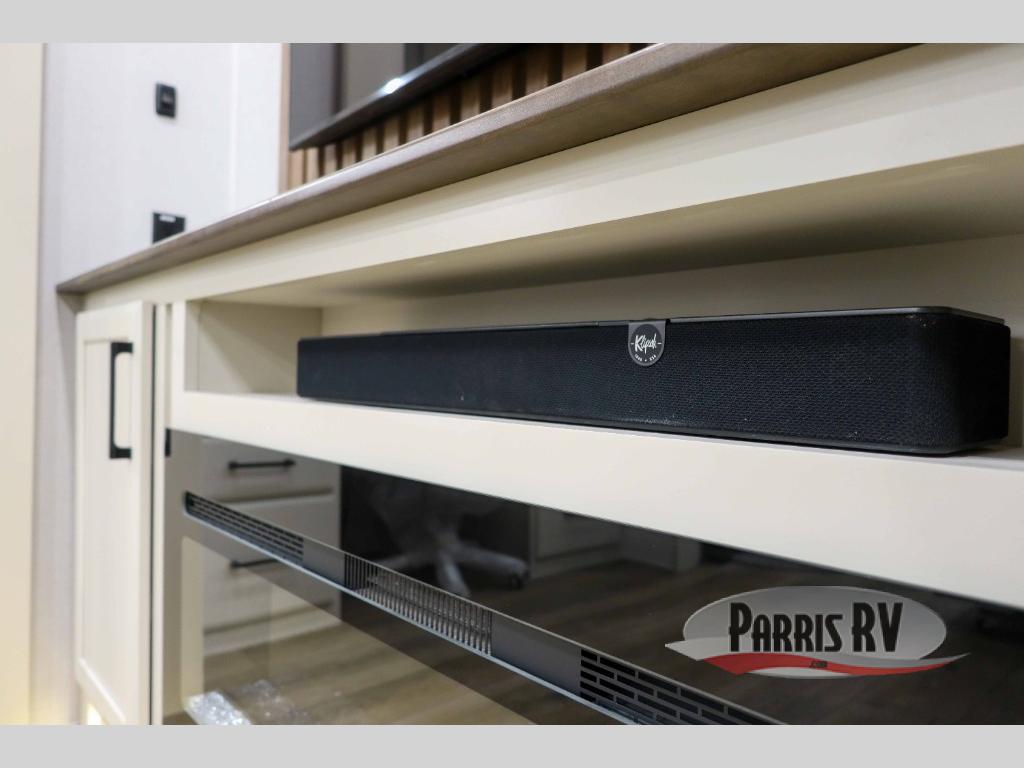 Step into luxury with this fifth wheel, where a high-end design, smart amenities, and functional living combine for an unmatched fifth wheel experience. As you enter you will find yourself in a spacious Kitchen for serious cooking: solid surface countertops, a full 18 cu. ft. french door refrigerator with ice maker, large stainless steel sink and residential-style faucet. Find yourself five slides that will create room for comfortable seating while you cozy up by the fireplace and watch your favorite movie or be as productive as you'd like with the slide out desk space. After a long day of travelling you will surely love to the front bedroom featuring a 72 x 80 king bed to finish your day with a good night's sleep.