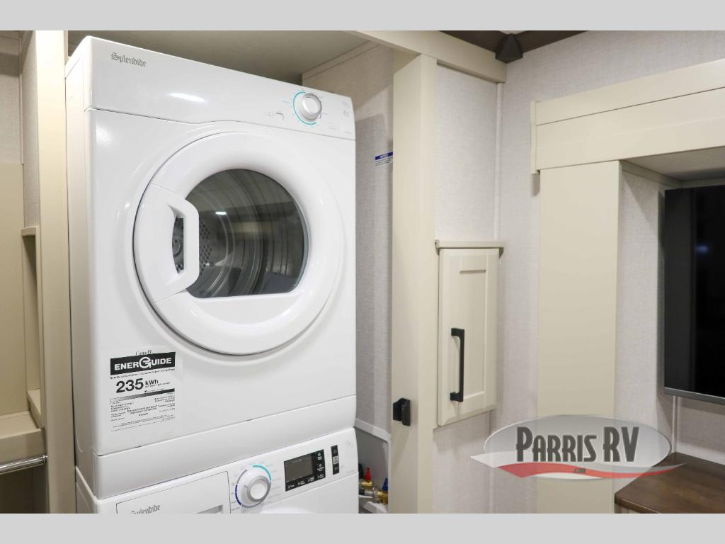 The Forest River RiverStone fifth wheels and toy haulers are luxurious units that have it all! You'll find an automatic six-point hydraulic level-up system to keep your unit in place, and there is preparation for a four-camera observation system. The TravlFi Journey XTR 4G/LTE router and WiFi extender will help you stay connected to the outside world, and you'll never have to overpack again since the Splendid “Astral” stackable washer and dryer will let you clean the small amount of clothes you've brought with you. Another high luxury is the Fischer Paykal dishwasher which will allow you to spend more time enjoying your camp life and less time cleaning up. Each unit is built with a LCI Road Armour suspension system, dual-pane frameless windows, a full docking station, a 200W solar panel, and a BMPro touch control system.