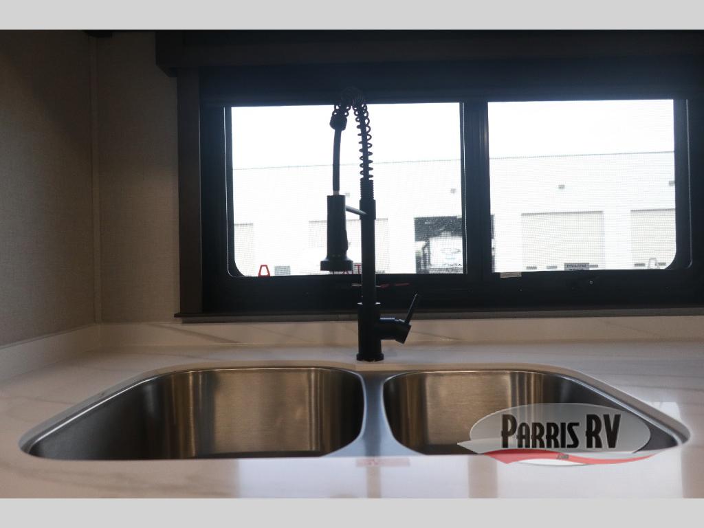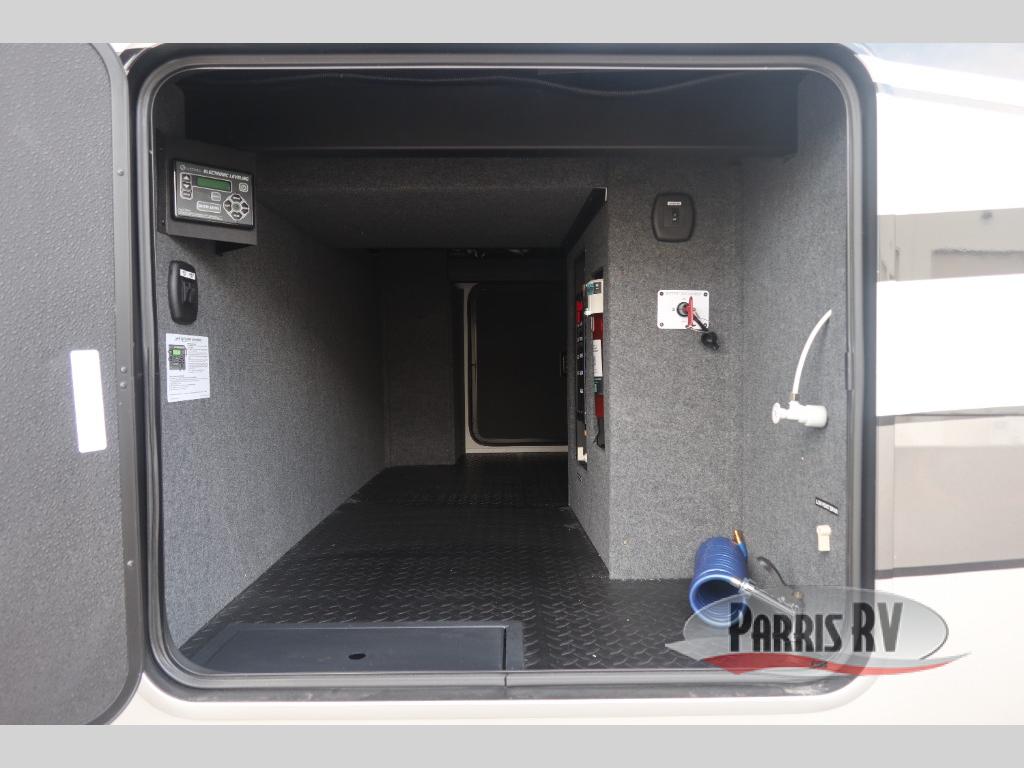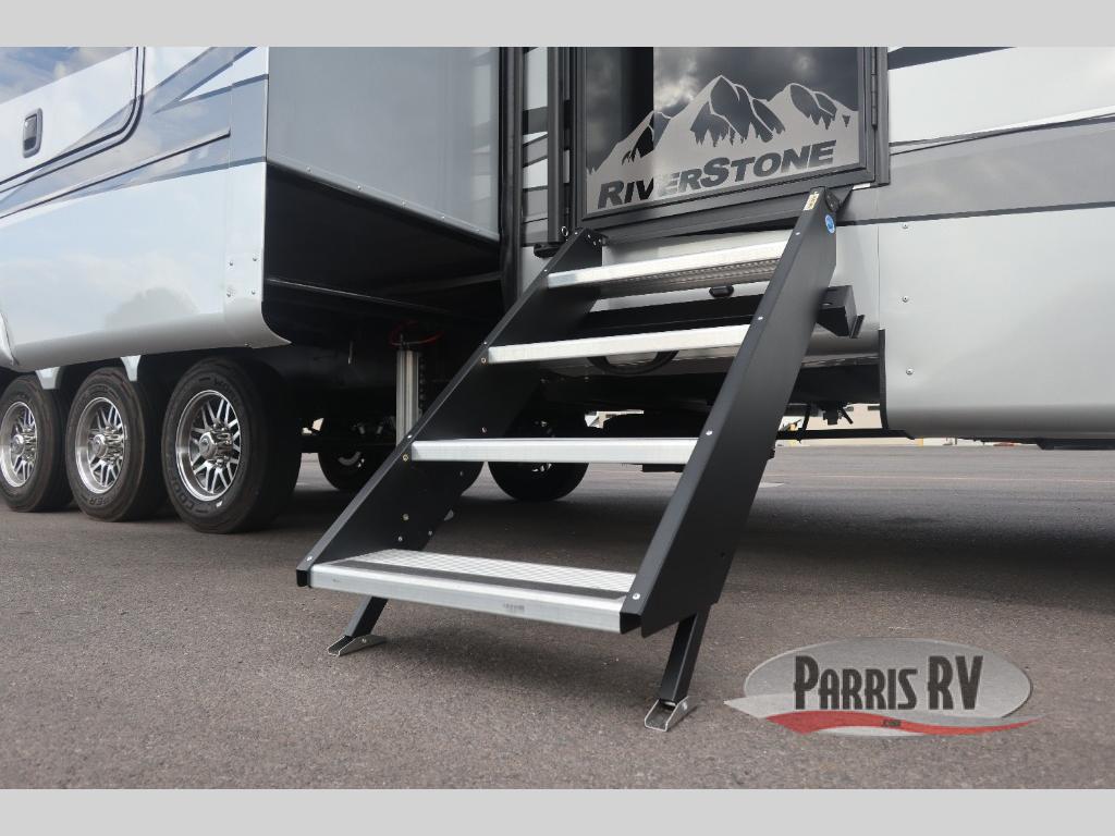 The Forest River RiverStone fifth wheels and toy haulers are luxurious units that have it all! You'll find an automatic six-point hydraulic level-up system to keep your unit in place, and there is preparation for a four-camera observation system. The TravlFi Journey XTR 4G/LTE router and WiFi extender will help you stay connected to the outside world, and you'll never have to overpack again since the Splendid “Astral” stackable washer and dryer will let you clean the small amount of clothes you've brought with you. Another high luxury is the Fischer Paykal dishwasher which will allow you to spend more time enjoying your camp life and less time cleaning up. Each unit is built with a LCI Road Armour suspension system, dual-pane frameless windows, a full docking station, a 200W solar panel, and a BMPro touch control system.