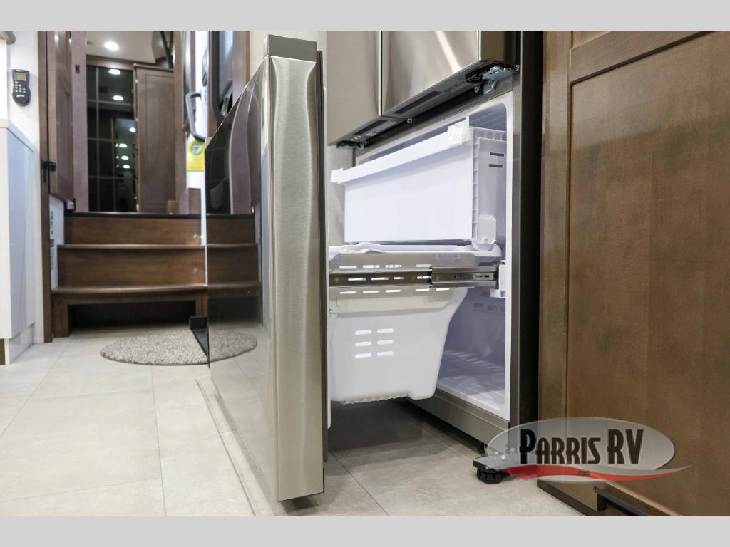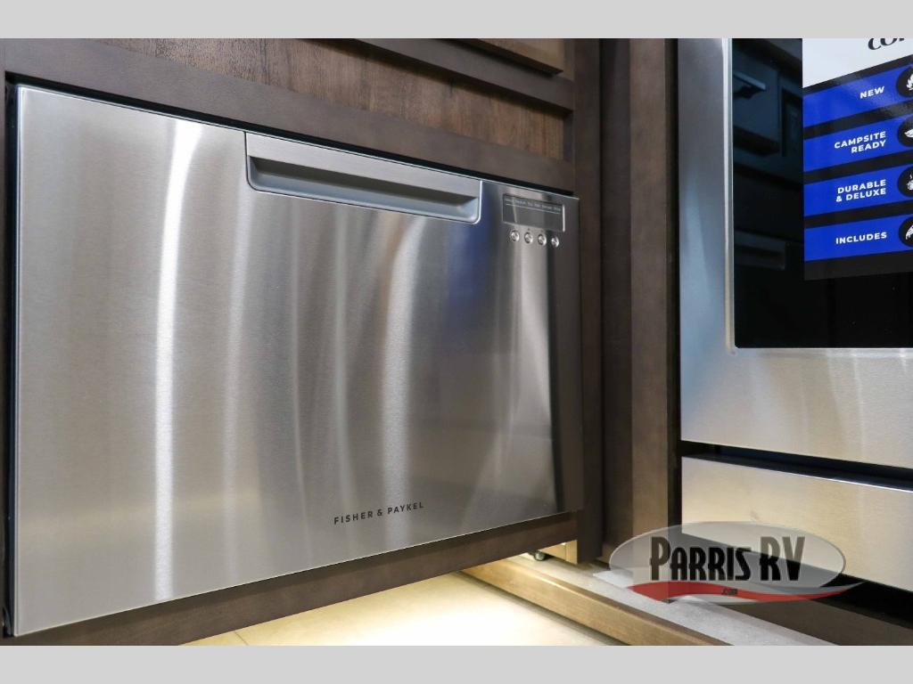 The Forest River RiverStone fifth wheels and toy haulers are luxurious units that have it all! You'll find an automatic six-point hydraulic level-up system to keep your unit in place, and there is preparation for a four-camera observation system. The TravlFi Journey XTR 4G/LTE router and WiFi extender will help you stay connected to the outside world, and you'll never have to overpack again since the Splendid “Astral” stackable washer and dryer will let you clean the small amount of clothes you've brought with you. Another high luxury is the Fischer Paykal dishwasher which will allow you to spend more time enjoying your camp life and less time cleaning up. Each unit is built with an LCI Road Armour suspension system, dual-pane frameless windows, a full docking station, a 200W solar panel, and a BMPro touch control system.