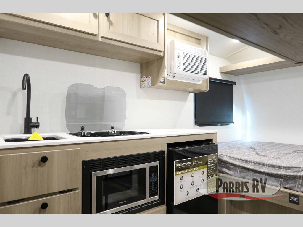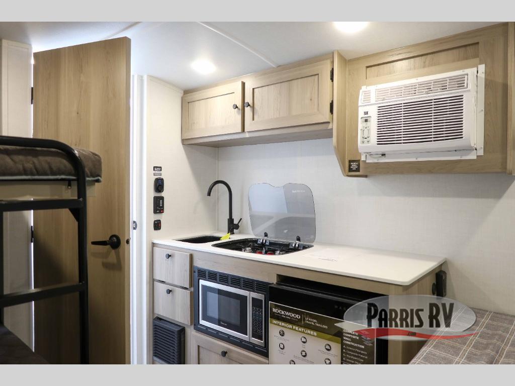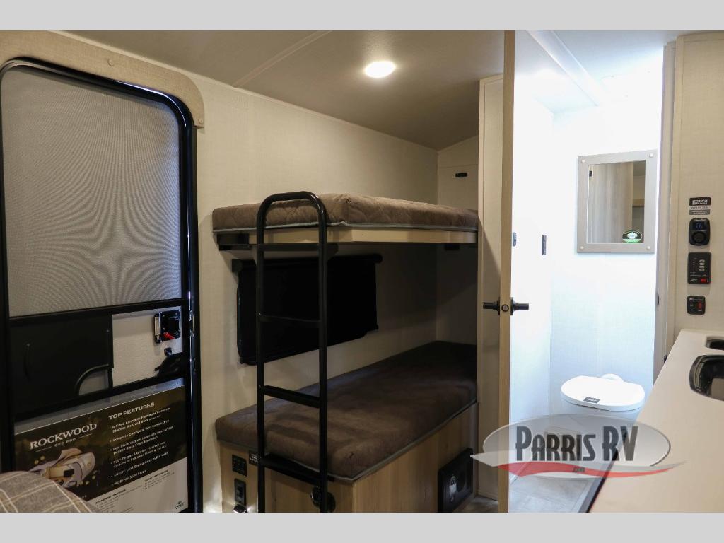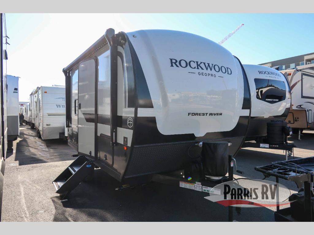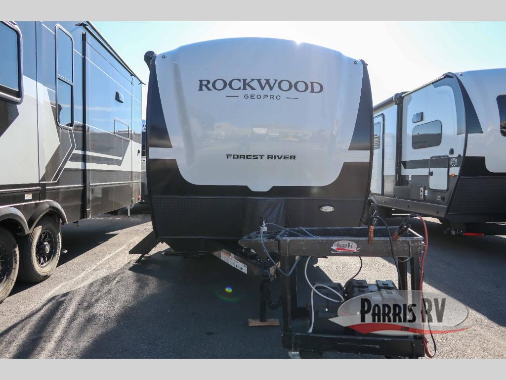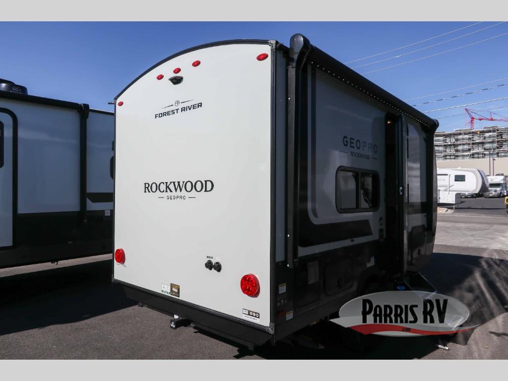 With any Rockwood GEO Pro travel trailer by Forest River you will enjoy easy towing, durable construction, and off-road capabilities with larger laminated roof! Each model is constructed with complete composite wall construction for added strength and durability, and Dexter® axles that will make towing easier than ever. Inside, you'll find sleek back up camera prep for added security, a refrigerator and a microwave, plus many other interior amenities that will make you feel at home on the road.