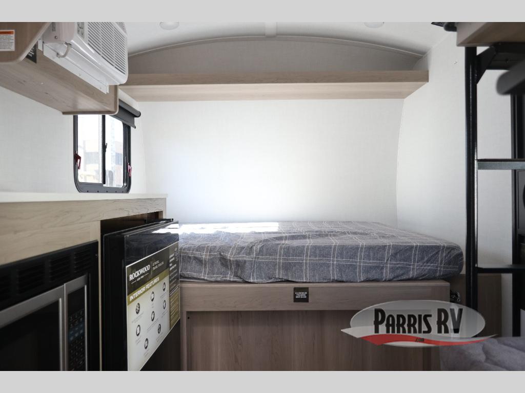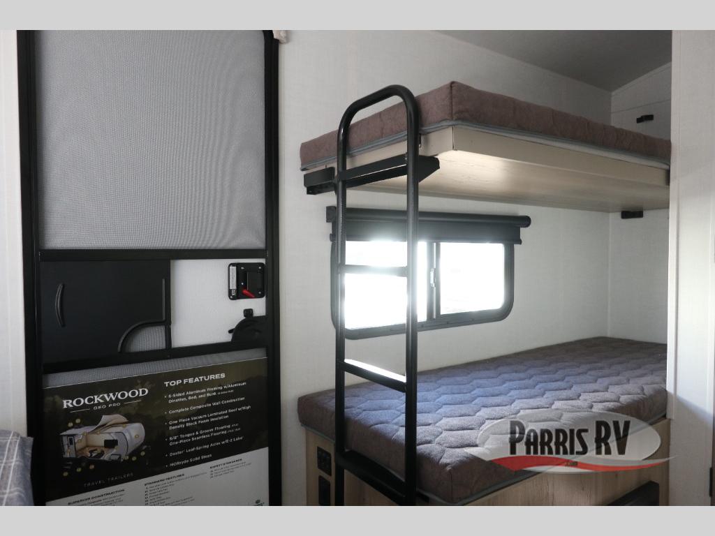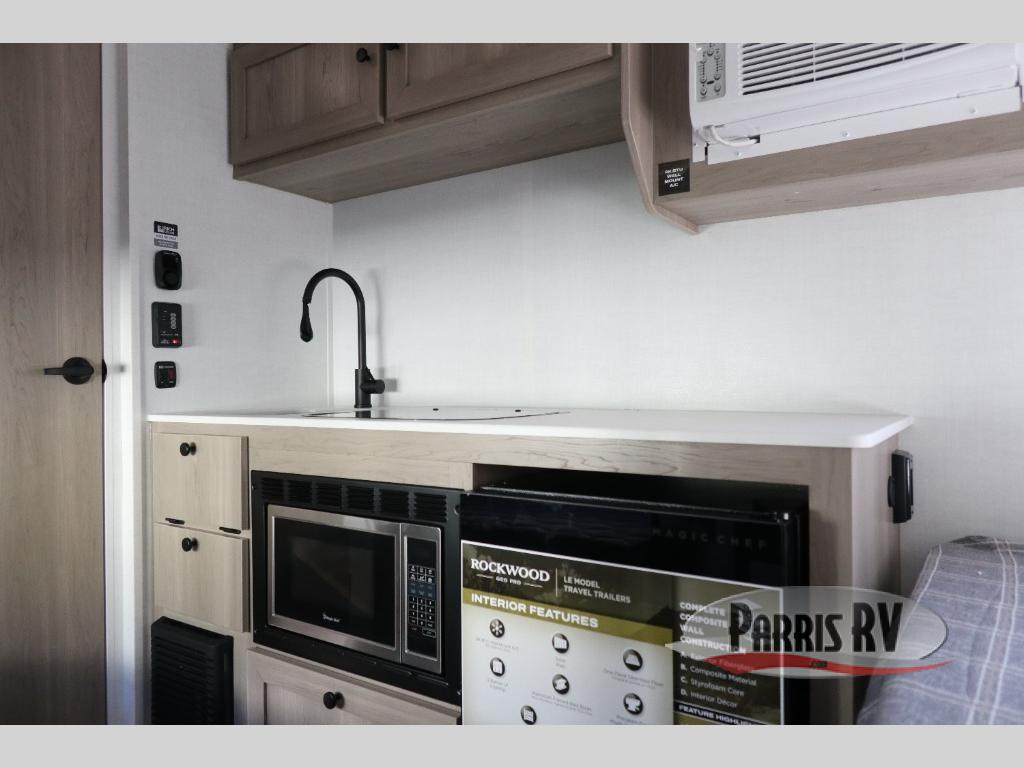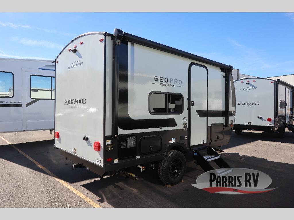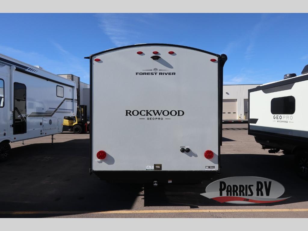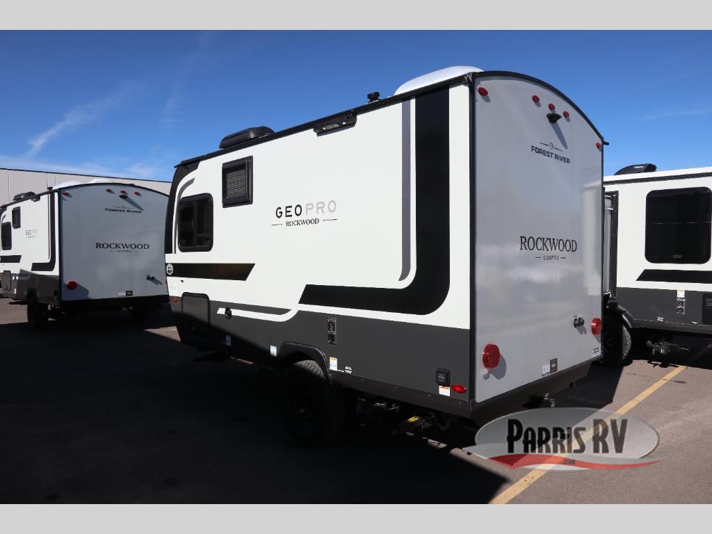 With any Rockwood GEO Pro travel trailer by Forest River you will enjoy easy towing, durable construction, and off-road capabilities with larger laminated roof! Each model is constructed with complete composite wall construction for added strength and durability, and Dexter® axles that will make towing easier than ever. Inside, you'll find sleek back up camera prep for added security, a refrigerator and a microwave, plus many other interior amenities that will make you feel at home on the road.