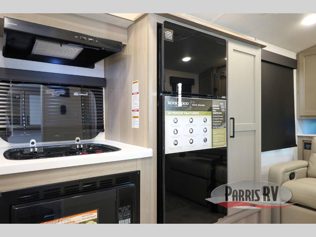 With any Rockwood GEO Pro travel trailer by Forest River you will enjoy easy towing, durable construction, and off-road capabilities with larger 15" tires and a lift kit! Each model is constructed with complete composite wall construction for added strength and durability, and the torsion axle, Rubber-Ryde suspension will make towing easier than ever. Inside, you'll find sleek roller shades for added privacy, a 12V refrigerator and a microwave, plus a 20,000 BTU furnace to keep you warm during the colder camping months.