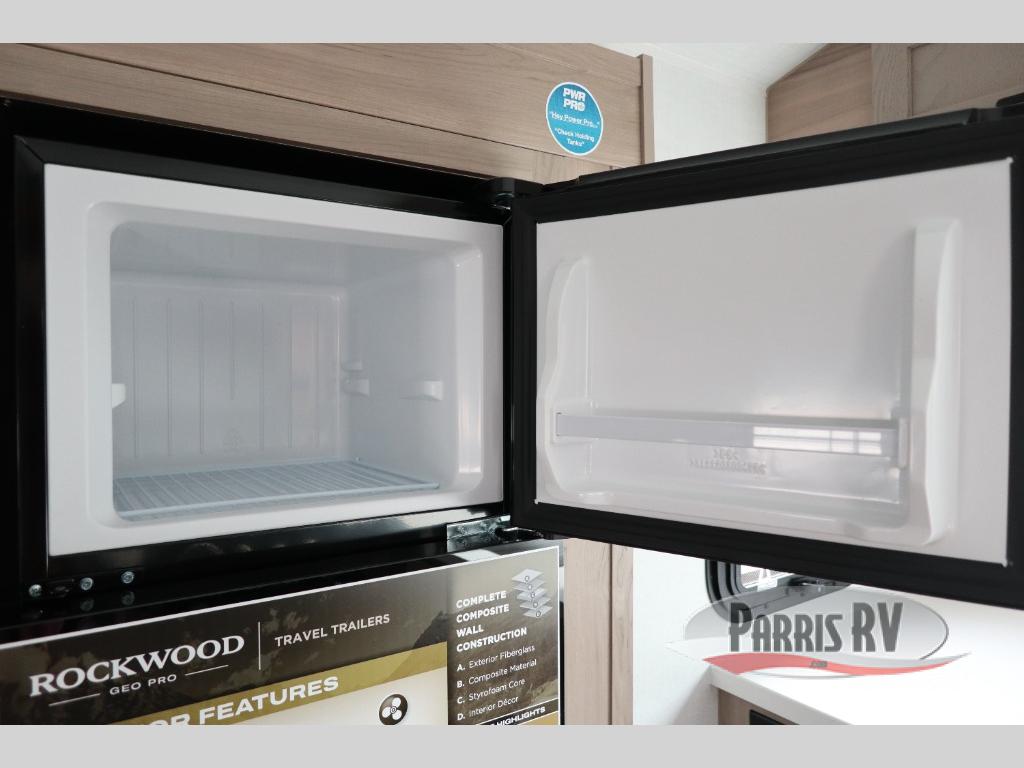 With any Rockwood GEO Pro travel trailer by Forest River you will enjoy easy towing, durable construction, and off-road capabilities with a fully laminated roof! Each model is constructed with complete composite wall construction for added strength and durability, and Dexter® axles that will make towing easier than ever. Inside, you'll find sleek back up camera prep for added security, a refrigerator and a microwave, plus many other interior amenities that will make you feel at home on the road.