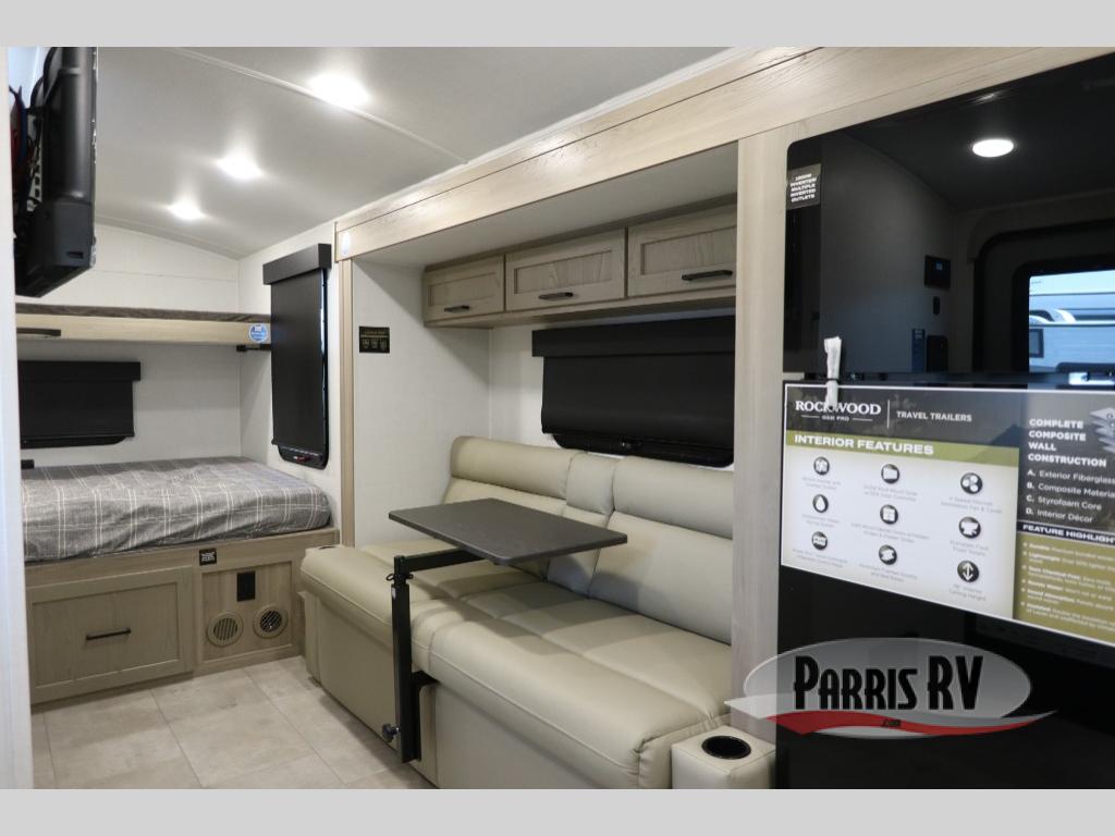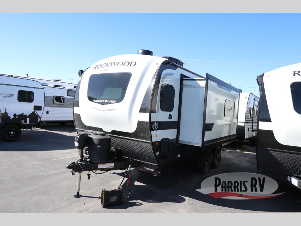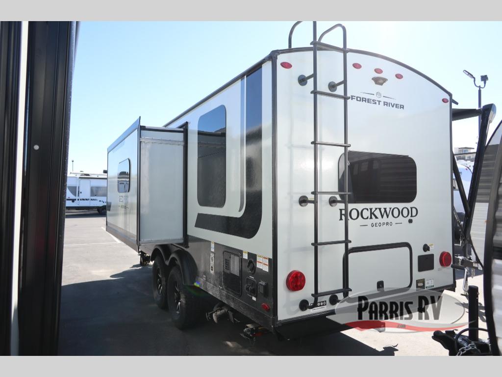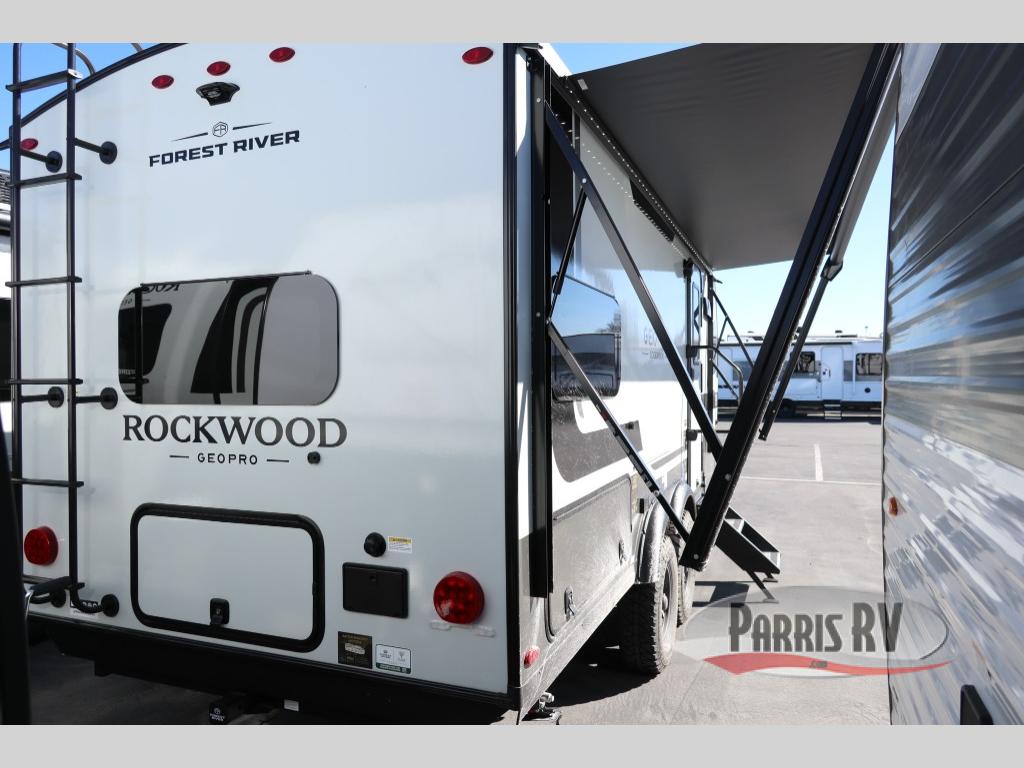 With any Rockwood GEO Pro travel trailer by Forest River you will enjoy easy towing, durable construction, and off-road capabilities with larger laminated roof! Each model is constructed with complete composite wall construction for added strength and durability, and Dexter® axles that will make towing easier than ever. Inside, you'll find sleek back up camera prep for added security, a refrigerator and a microwave, plus many other interior amenities that will make you feel at home on the road.