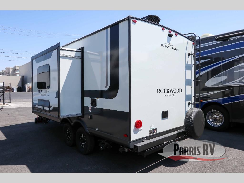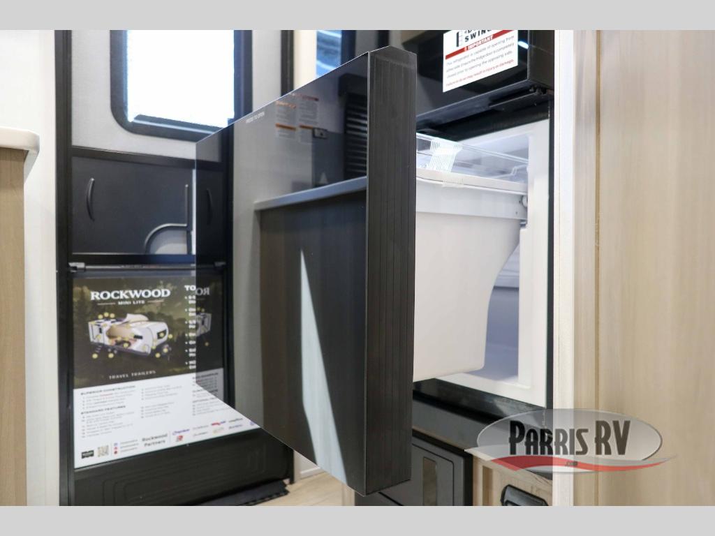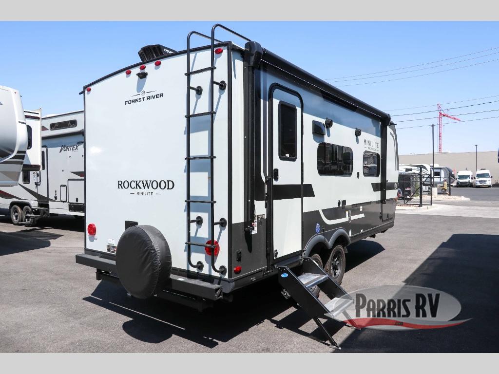 Each Rockwood Mini Lite travel trailer by Forest River is constructed with a fully laminated one-piece walkable roof, sleek frameless windows, and a six-sided full aluminum frame for strength and durability. The 12V thermostatically controlled heated tanks, plus radiant foil in the underbelly will allow you to camp well into the colder months, and the 200W roof solar panel will be perfect for a little off-gridding. Each model includes solid surface kitchen countertops, hidden hinge cabinet doors, roller shades, plus many more interior features. Having an AIR 360+ omnidirectional antenna with WiFi prep on board gives you the option to get some work done if it's needed, and the power tongue jack provides hassle-free set up, so you can enjoy more time relaxing!