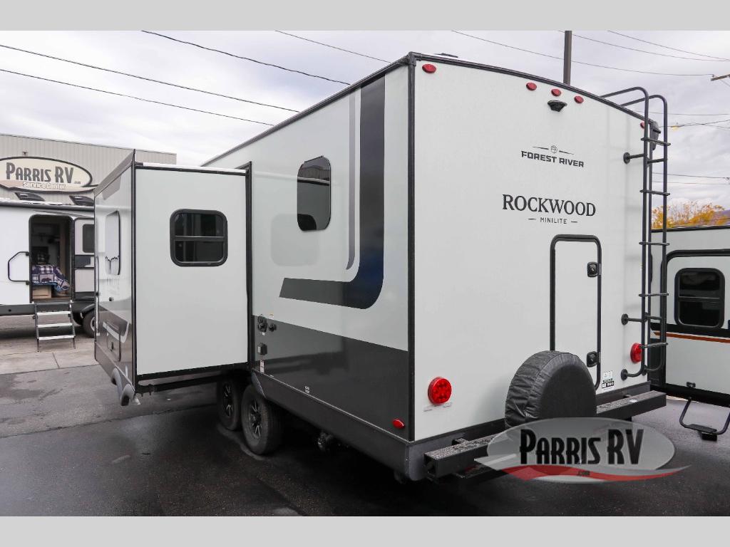 Each Rockwood Mini Lite travel trailer by Forest River is constructed with a fully laminated one-piece walkable roof, sleek frameless windows, and a six-sided full aluminum frame for strength and durability. The 12V thermostatically controlled heated tanks, plus radiant foil in the underbelly will allow you to camp well into the colder months, and the 200W roof solar panel will be perfect for a little off-gridding. Each model includes solid surface kitchen countertops, hidden hinge cabinet doors, roller shades, plus many more interior features. Having an AIR 360+ omnidirectional antenna with WiFi prep on board gives you the option to get some work done if it's needed, and the power tongue jack provides hassle-free set up, so you can enjoy more time relaxing!