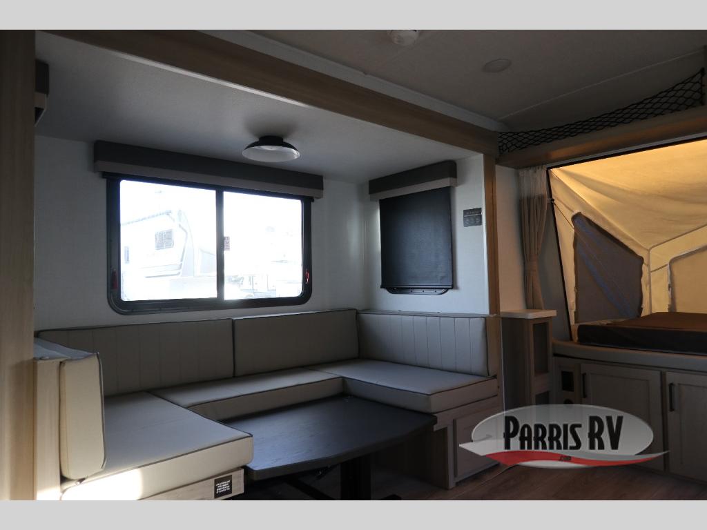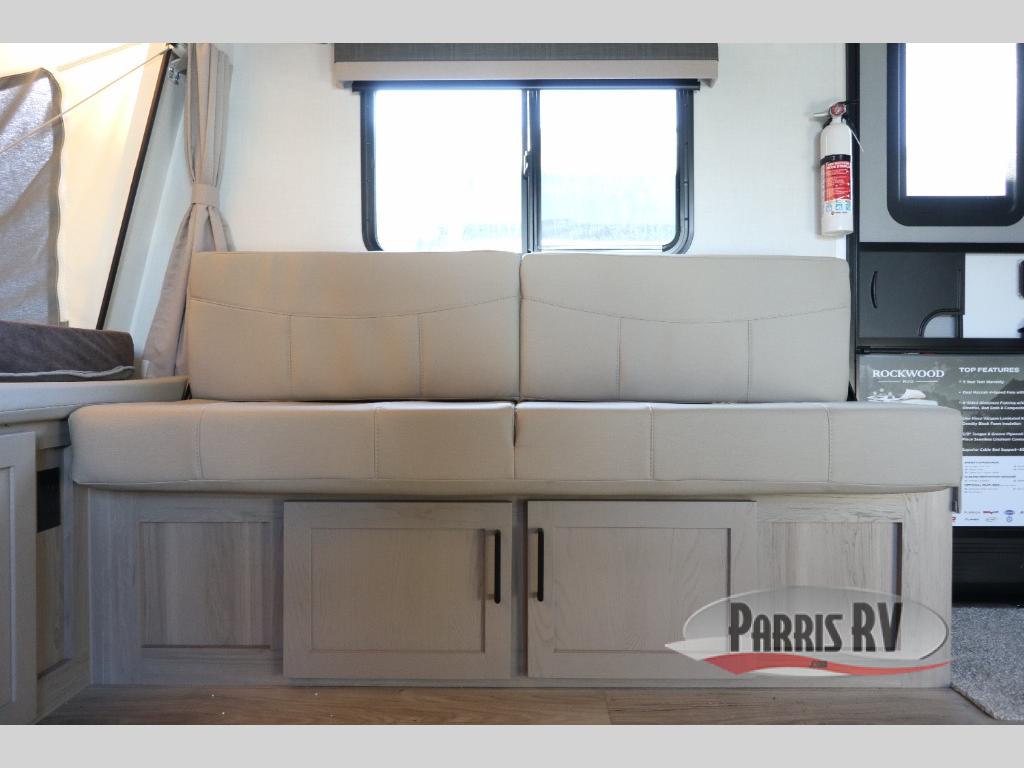 With any Rockwood Roo expandable travel trailer by Forest River you will enjoy smooth towing thanks to the Dexter sprung axles and nitrogen-filled tires. The key-Alike locks provide easy access in and out of your trailer, and each model includes Winegard Air 360+ prepped for WiFi for all your connection needs. Each model is constructed with a fully laminated walkable roof, a 6-sided full-aluminum frame, and complete composite wall construction for added durability. You will enjoy many interior comforts, including residential look kitchen countertops, roller shades, hidden hinge cabinet doors, and more features found within the Near Nature Package!