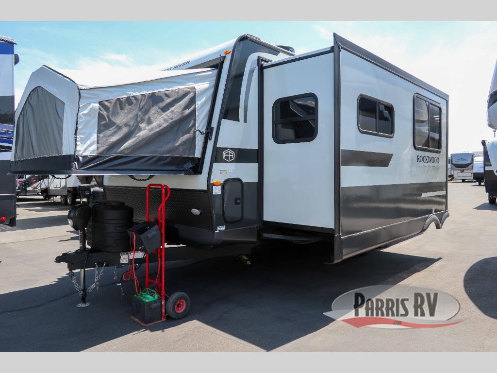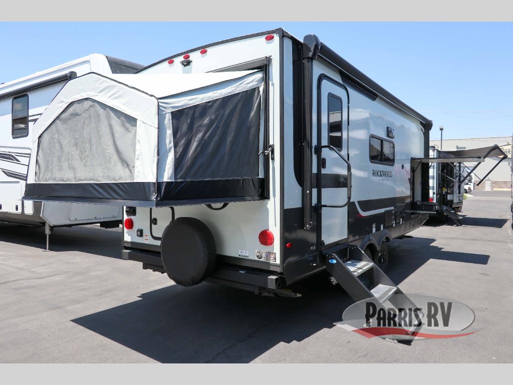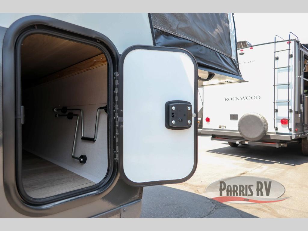 With any Rockwood Roo expandable travel trailer by Forest River you will enjoy smooth towing thanks to the torsion axle, Rubber-Ryde suspension, the easy lube axles and Nev-R-Adjust brakes. The key-Alike locks provide easy access in and out of your trailer, and each model includes prep for a Air 360+Omnidirectional antenna with WiFi for all your connection needs. Each model is constructed with a vacuum laminated one-piece roof and walls, an enclosed underbelly, and tinted framed windows for a more sleek look. You will enjoy many interior comforts, including hardwood cabinet doors and drawer fronts, night roller shades, a bunk/fan light combo with each bed, and much more!