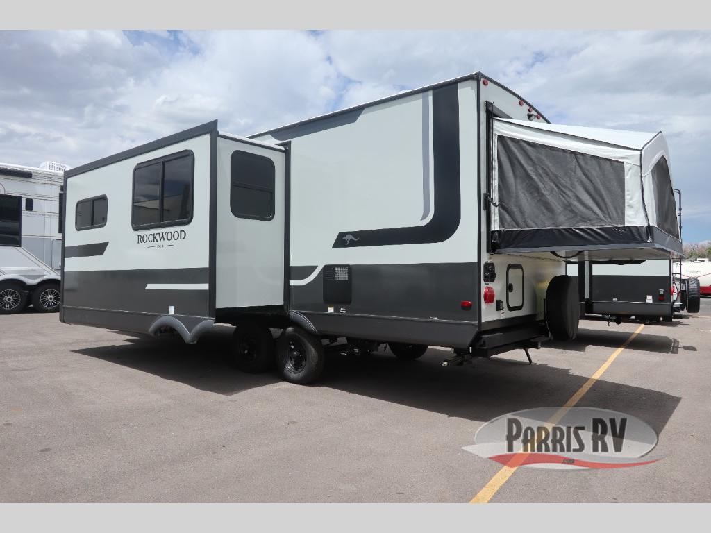With any Rockwood Roo expandable travel trailer by Forest River you will enjoy smooth towing thanks to the torsion axle, Rubber-Ryde suspension, the easy lube axles and Nev-R-Adjust brakes. The key-Alike locks provide easy access in and out of your trailer, and each model includes prep for a Air 360+Omnidirectional antenna with WiFi for all your connection needs. Each model is constructed with a vacuum laminated one-piece roof and walls, an enclosed underbelly, and tinted framed windows for a more sleek look. You will enjoy many interior comforts, including hardwood cabinet doors and drawer fronts, night roller shades, a bunk/fan light combo with each bed, and much more!