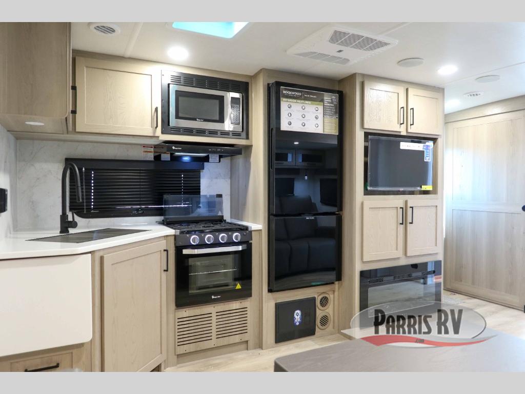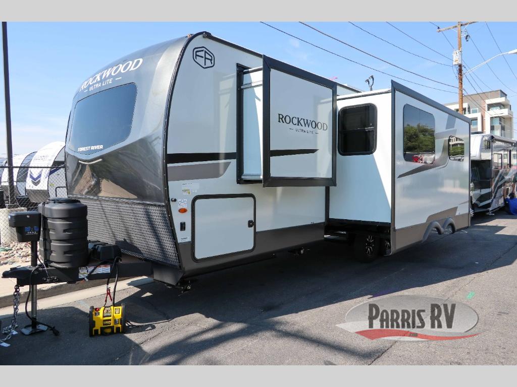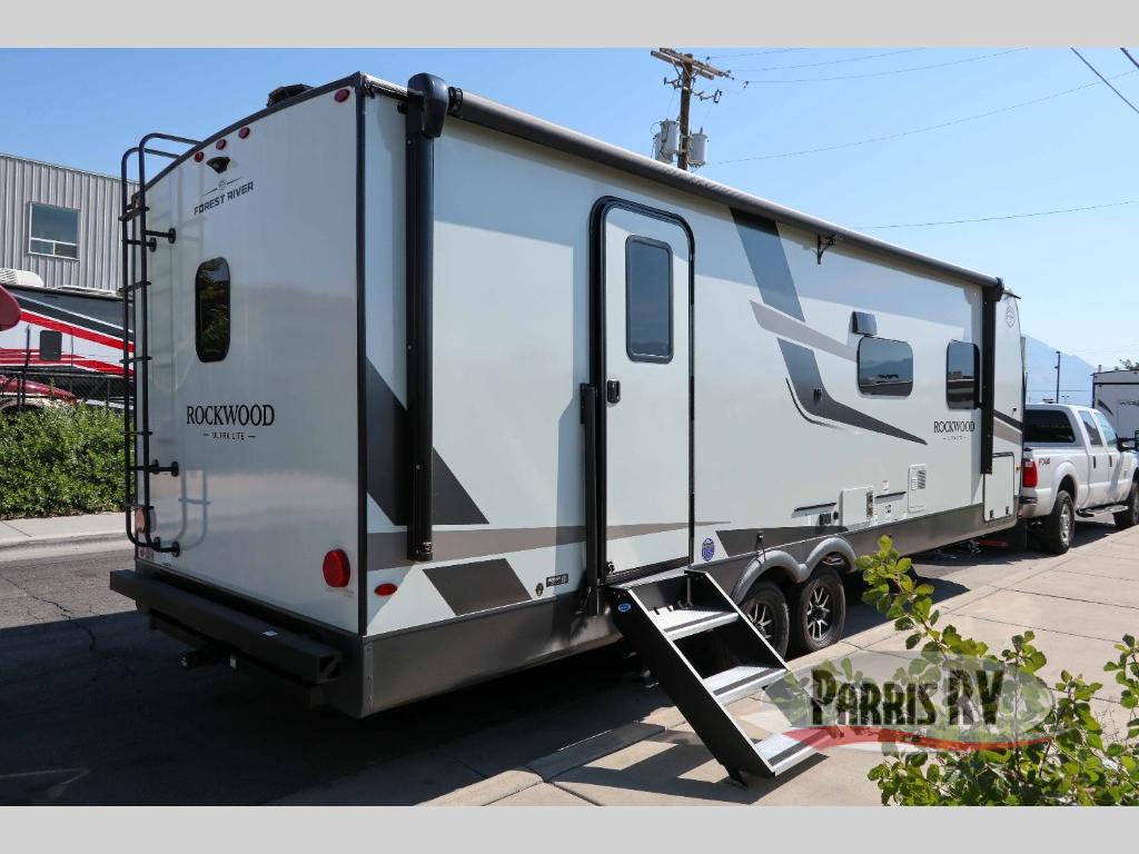 Each Rockwood Ultra Lite travel trailer by Forest River includes superior construction with a high gloss front cap, laminated white fiberglass sidewalls, and tinted frameless windows for a sleek look. The torsion axle, Rubber-Ryde suspension will make towing smooth and hassle-free, along with the nitrogen filled, Goodyear Endurance tires and the tire pressure monitor system. Interior comforts include designer kitchen backsplash, solid wood cabinet doors with hidden hinges, and night roller shades to name a few. Choose a Rockwood Ultra Lite travel trailer today!