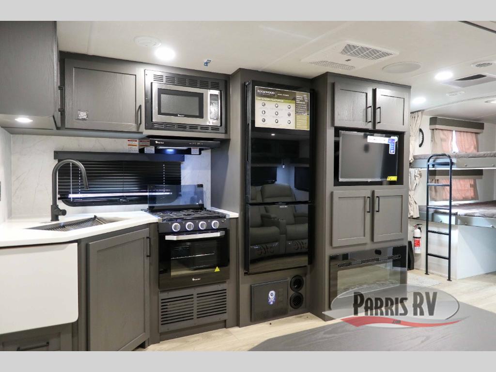 Each Rockwood Ultra Lite travel trailer by Forest River includes superior construction with a high gloss fiberglass cap, aluminum cage construction, and a power awning with LED lighting for a cozy and functional outdoor space. The torsion axle, power tongue jack will make towing smooth and hassle-free, along with the nitrogen filled, Goodyear Endurance tires and the tire pressure monitor system. Interior comforts include kitchen sink with high rise faucet, hidden hinge cabinet doors, and roller shades to name a few. Choose a Rockwood Ultra Lite travel trailer today!