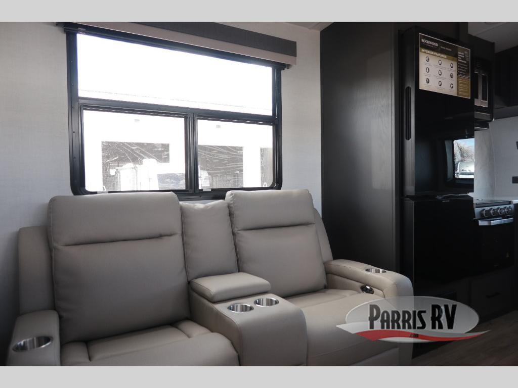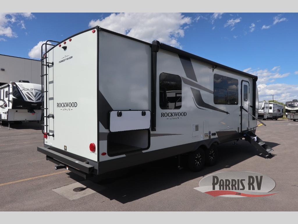 Each Rockwood Ultra Lite travel trailer by Forest River includes superior construction with a high gloss fiberglass cap, aluminum cage construction, and a power awning with LED lighting for a cozy and functional outdoor space. The torsion axle, power tongue jack will make towing smooth and hassle-free, along with the nitrogen filled, Goodyear Endurance tires and the tire pressure monitor system. Interior comforts include kitchen sink with high rise faucet, hidden hinge cabinet doors, and roller shades to name a few. Choose a Rockwood Ultra Lite travel trailer today!
