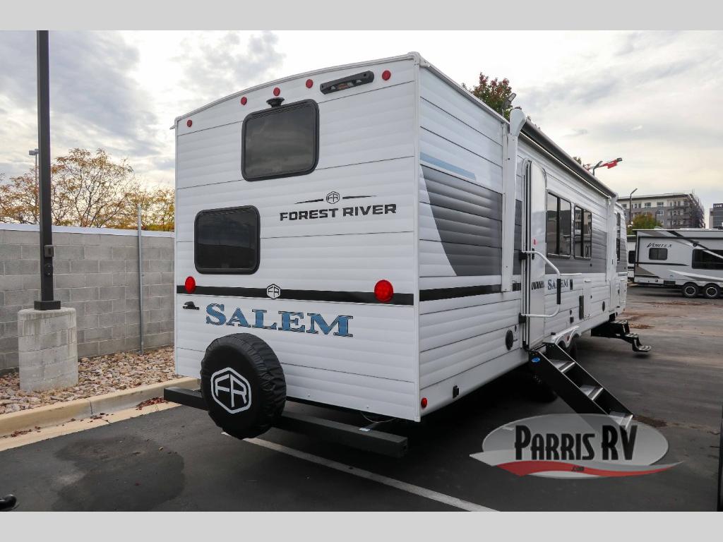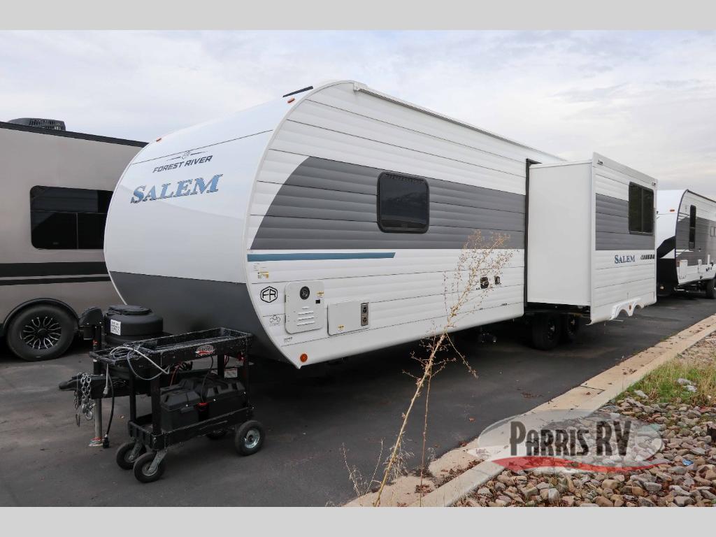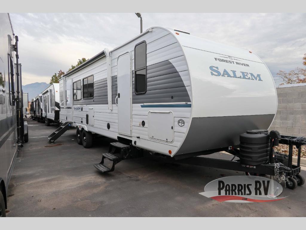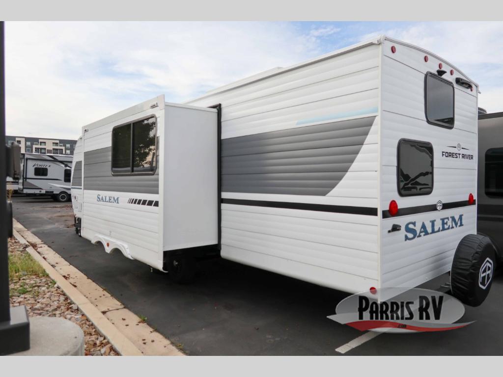 The Salem travel trailers are packed with hassle-free camping amenities and there are a variety of floorplans to choose from. The heated and enclosed Accessibelly will help protect against the elements and debris during transport, and the exterior retro/metal redesign is sure to be eye-catching! There are stylish roller shades inside, along with updated backsplash, elegant curtain rods and curtains, plus many more interior comforts! Choose a Salem travel trailer today for quality and value!