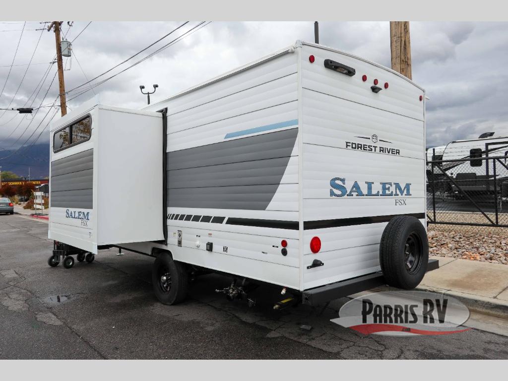 The Forest River Salem FSX travel trailers and toy hauler travel trailers are ultra comfortable and lightweight, perfect for first time or seasoned campers alike! You will love how easy it will be to relax with residential features that will make your space feel just like home, and the durable construction means you can enjoy your RV for years to come. There are a wide variety of floorplans to choose from, including couple's trailers, bunk models, and toy haulers, all with full bath and kitchen amenities and plenty of storage for all your gear!