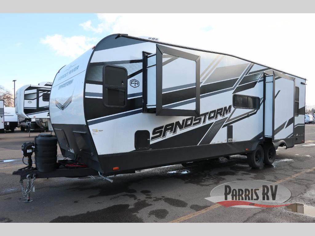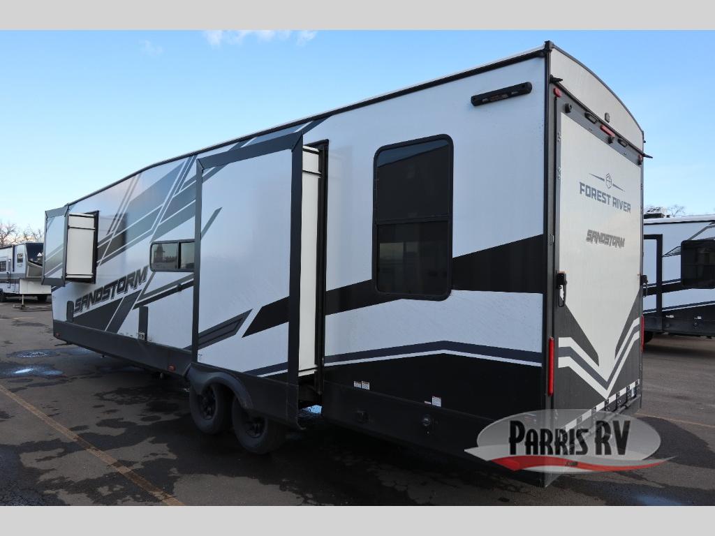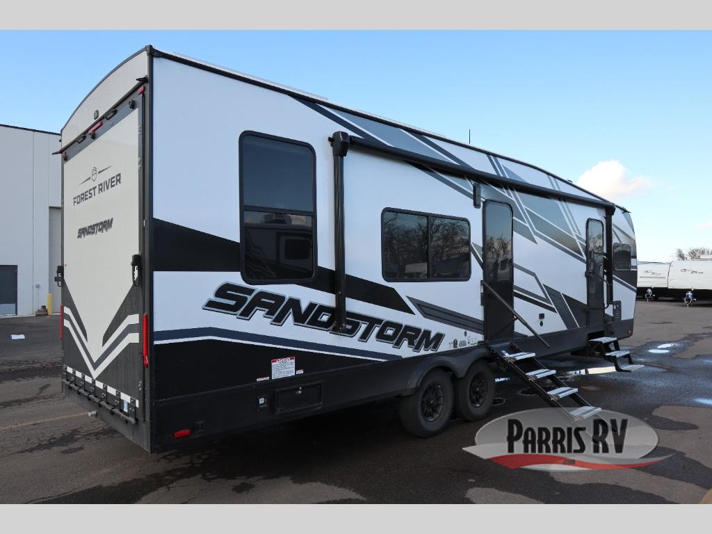 Enjoy flexible living and affordable costs with the Sandstorm fifth wheel and travel trailer toy haulers! The versatile garage areas can be used for both toy storage plus seating and sleeping spaces. Each model includes a ramp door with patio cables, a power tongue jack, and a 40-gallon fuel station to keep your bikes filled and ready for adventure. The residential king bed is sure to bring comfort each day, along with a tankless water heater so everyone can clean up after trail riding. There are a variety of floorplans to choose from, including GX models with added features for those who want to take their excursions up a notch!