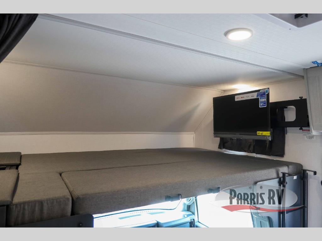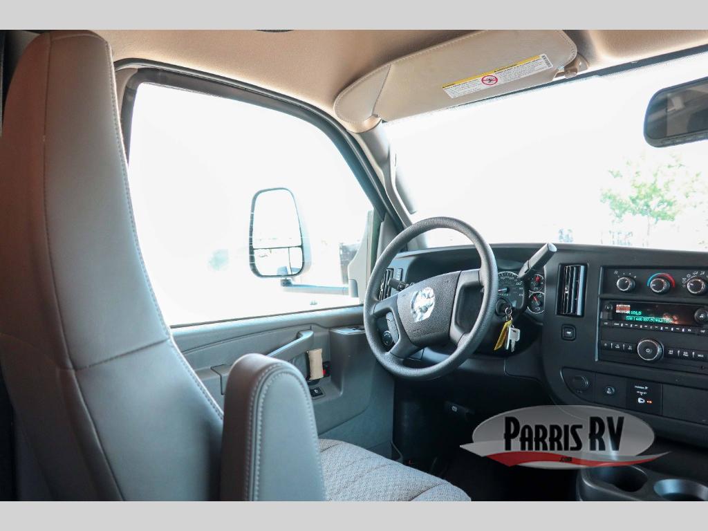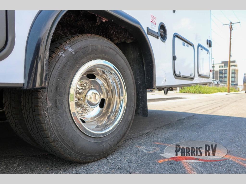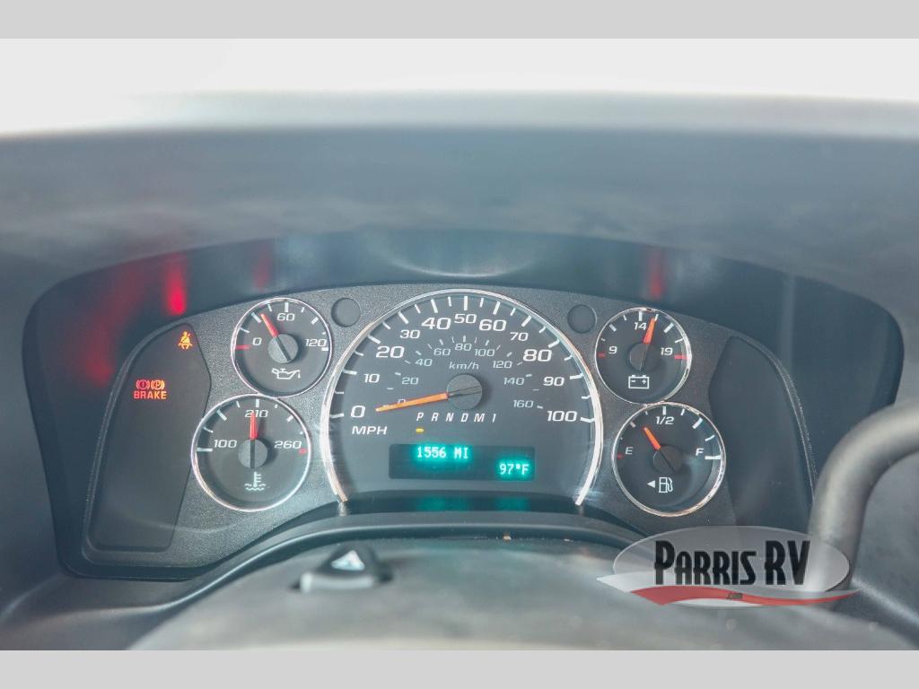 Start traveling in true luxury with this motorhome! The corner queen bed offers a comfortable night's rest, and is conveniently next to the rear corner bathroom which has a 24" x 32" shower and a vanity sink just outside it next to a wardrobe. Keep your bellies full with home cooked meals prepared with the three burner cooktop, the 10.7 cu. ft. refrigerator, and use the flip-up countertop for more counter space. You can eat your meals at the U-shaped dinette and transform it into an extra sleeping space too. The 60" x 80" bunk over cab also offers a comfortable sleeping space with a 12V TV for entertainment! This model is also available with a Ford E350 chassis; see model 22N for more details.