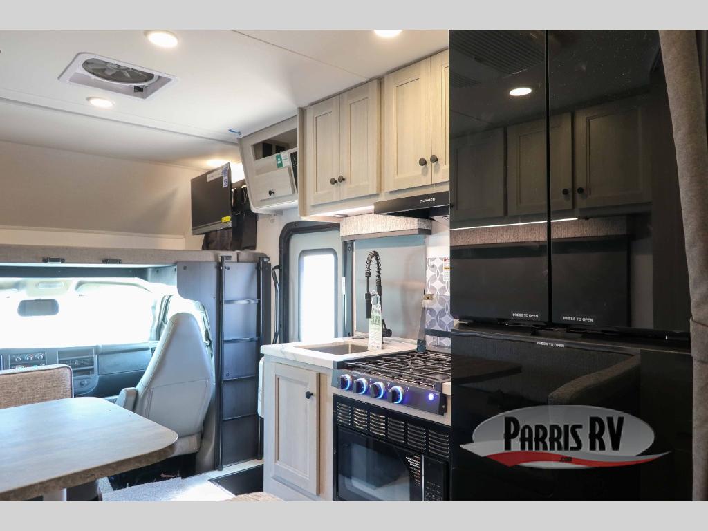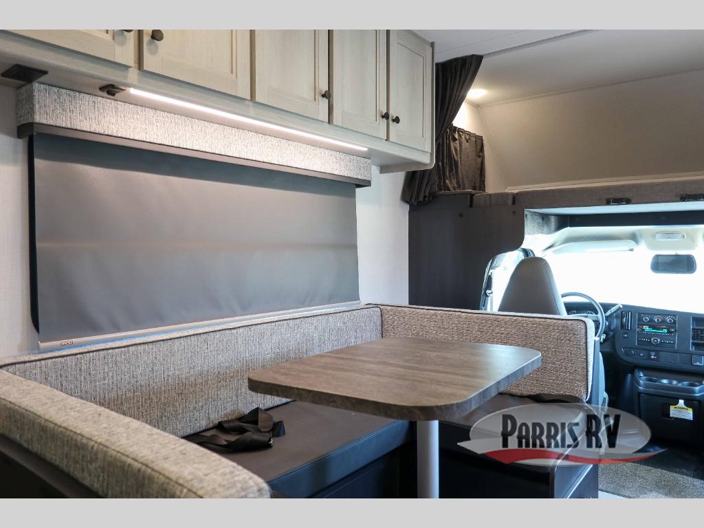 Each one of these Forest River Solera Class C gas and diesel motorhomes proclaim the style of a new generation! There is a convenient keyless entry, a backup and side view camera system, and a 10" in-dash touch screen Apple Carplay/Android Auto radio. The Ford E350/Chevy 3500, Ford E450 or Mercedes-Benz Sprinter 3500 chassis also help with the smooth ride. Each model includes aluminum framed laminated sidewalls, superlite composite substrate, and a gel coat exterior fiberglass for added durability. Inside, you will enjoy the MCD roller shades, residential style furniture with Fortress stain resistant fabrics, soft touch self-closing drawer guides, and many more comforts. And you can stay connected where ever you go with the Winegard Air 360+ antenna with Gateway 4G WiFi capability.