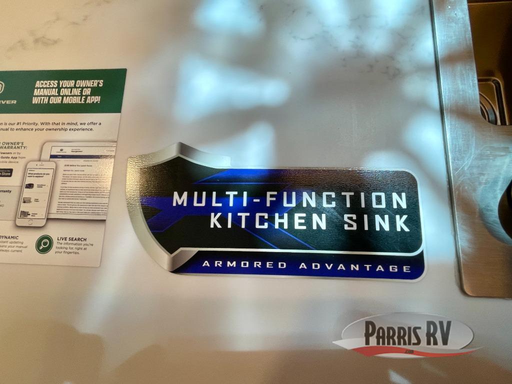 Every one of these Forest River Vengeance Rogue Armored travel trailer toy haulers come with the features you want most at an affordable price tag! The DuraPoxy gas/oil resistant floor has 5,000 lb. tie downs to ensure your toys will arrive safely without damaging the flooring, plus the 3,000 lb. rated ramp door makes it easy to load them. A 15,000 BTU A/C will keep you cool even on the hottest summer days, and an Armored underbelly helps keep your unit's vitals protected. The Rogue Ready package comes a fuel station with a pump, a ramp door patio system, a TST tire pressure monitoring system, and many more stand-out features. And don't overlook the Rogue Premium Package with an 8' weatherproof ramp door, an exterior TV hookup for the option to add a television, blue accent wheels, and solar reflective safety glass windows to name a few conveniences.