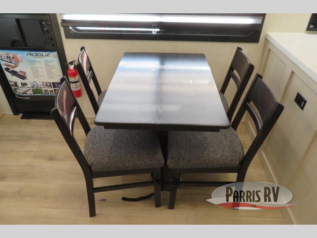Every one of these Forest River Cherokee Rogue Armored fifth wheel toy haulers come with the features you want most at an affordable price tag! The DuraPoxy gas/oil resistant floor has 5,000 lb. tie downs to ensure your toys will arrive safely without damaging the flooring, plus the 3,000 lb. rated ramp door makes it easy to load them. Two 15,000 BTU A/Cs are "Super H Ducted" to keep you cool even on the hottest summer days, and the heated enclosed holding tanks help protect against the elements. Each model also includes a 6-point leveling system, dual LED cargo lights, solar reflective windows, and a tire pressure monitoring system. Inside, you'll enjoy the solid surface countertops, glass shower door, zebra shades in the living room, and stainless-steel multi-purpose sink to name a few comforts!