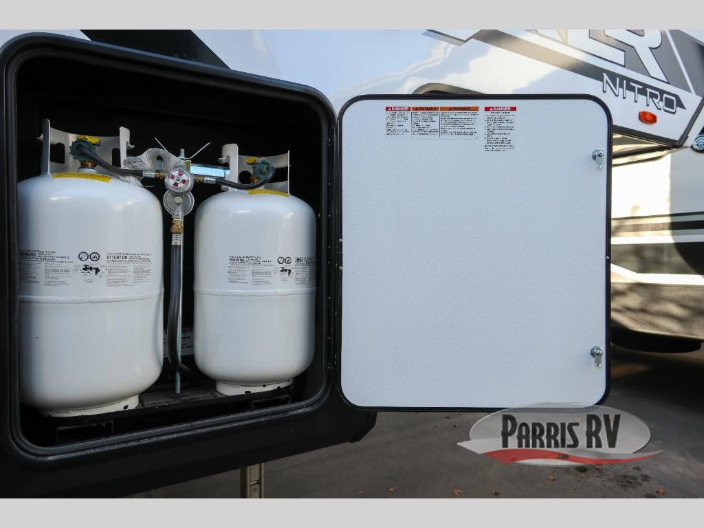 The outdoor enthusiasts have met their match with the XLR Nitro toy haulers by Forest River. The vacuum-bonded aluminum framed sidewalls, high gloss fiberglass exterior, and one-piece roof membrane are just a few durable construction materials you will find on these models. There is a weatherproof insulated ramp door, 5,000 lb. cargo tie-downs, a 40 gallon fuel station, and more convenient garage features that will make camping with toys easier than ever. You'll appreciate smooth towing thanks to the MORryde CRE3000 suspension enhancement and 16" Goodyear Endurance tires. A 200 watt roof-mounted solar panel, along with electric awning(s) with LED lights, undercarriage lighting, and friction hinge entry door(s). Some of the innovative technology features include a Winegard Air 360 antenna with WiFi prep and 4G LTE, convenient USB charging stations. You will also find diamond solid surface kitchen countertops, residential tile backsplash, hardwood cabinet doors, hardwood window trim package, and many more interior comforts.