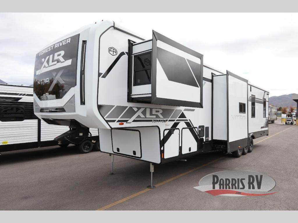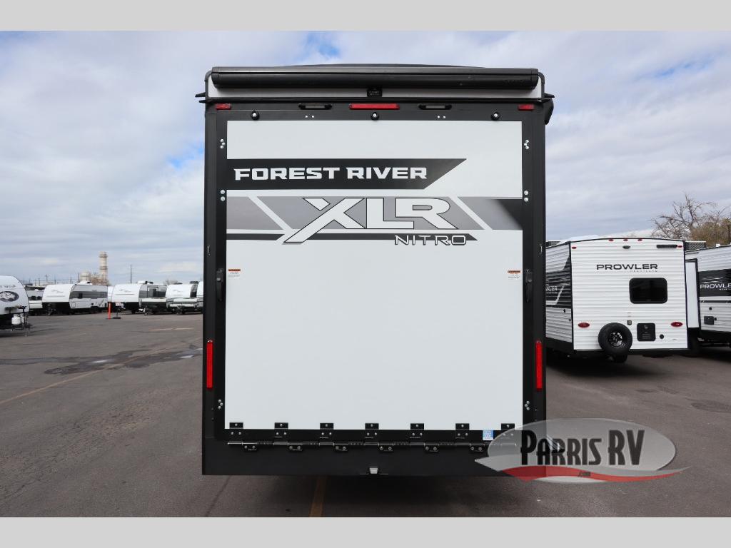 The outdoor enthusiasts have met their match with the XLR Nitro toy haulers by Forest River. The vacuum-bonded aluminum framed sidewalls, high gloss fiberglass exterior, and one-piece roof membrane are just a few durable construction materials you will find on these models. There is a weatherproof insulated ramp door, 5,000 lb. cargo tie-downs, a 40 gallon fuel station, and more convenient garage features that will make camping with toys easier than ever. You'll appreciate smooth towing thanks to the MORryde CRE3000 suspension enhancement and 16" Goodyear Endurance tires. A 200 watt roof-mounted solar panel, along with electric awning(s) with LED lights, undercarriage lighting, and friction hinge entry door(s). Some of the innovative technology features include a Winegard Air 360 antenna with WiFi prep and 4G LTE, convenient USB charging stations. You will also find diamond solid surface kitchen countertops, residential tile backsplash, hardwood cabinet doors, hardwood window trim package, and many more interior comforts.