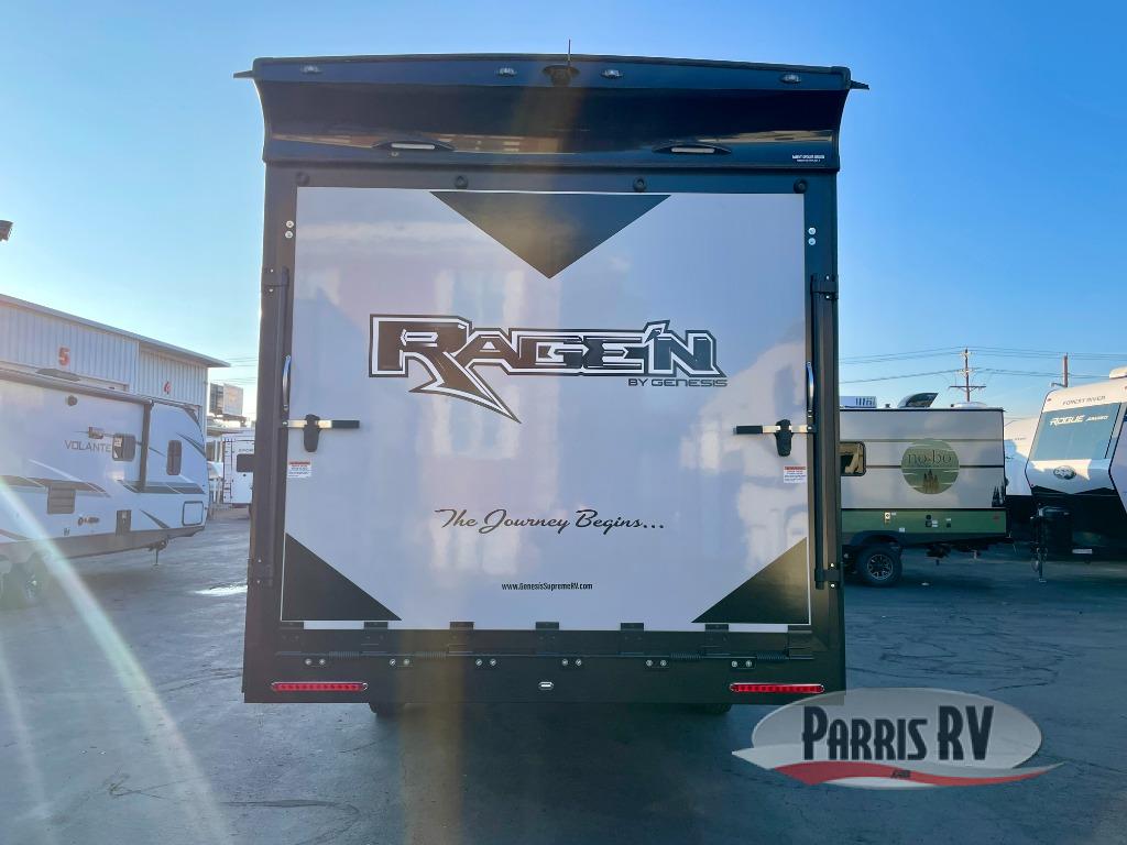 The Rage'n fifth wheel and travel trailer toy haulers by Genesis Supreme are the perfect match for outdoor enthusiasts. The innovative floorplans include many at-home features and conveniences to make each trip enjoyable. Loading up your toys will be easier than ever since there is a 102" wide-body design, and the durable construction means you can enjoy your toy hauler for years to come. There are many different features available, depending on the model you choose, plus available options to further customize your unit. Choose a Rage'n toy hauler today!