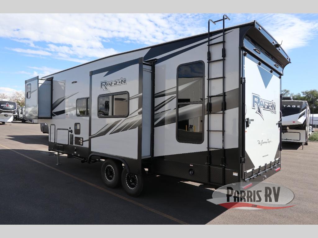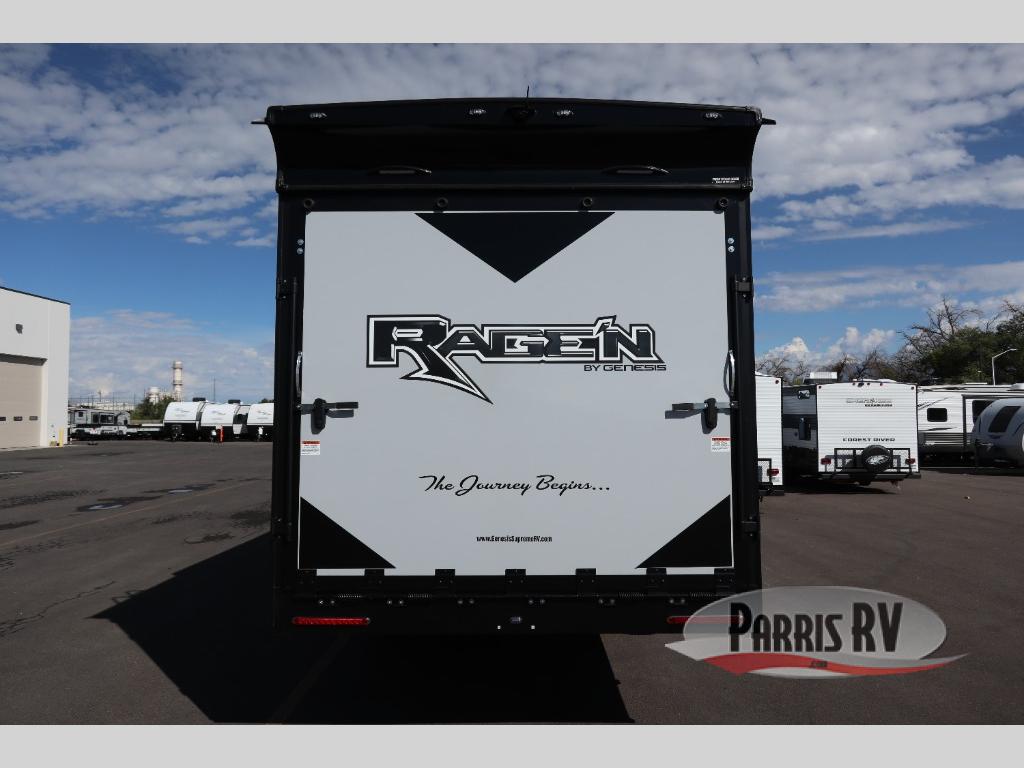 The Rage'n fifth wheel and travel trailer toy haulers by Genesis Supreme are the perfect match for outdoor enthusiasts. The innovative floorplans include many at-home features and conveniences to make each trip enjoyable. Loading up your toys will be easier than ever since there is a 102" wide-body design, and the durable construction means you can enjoy your toy hauler for years to come. There are many different features available, depending on the model you choose, plus available options to further customize your unit. Choose a Rage'n toy hauler today!