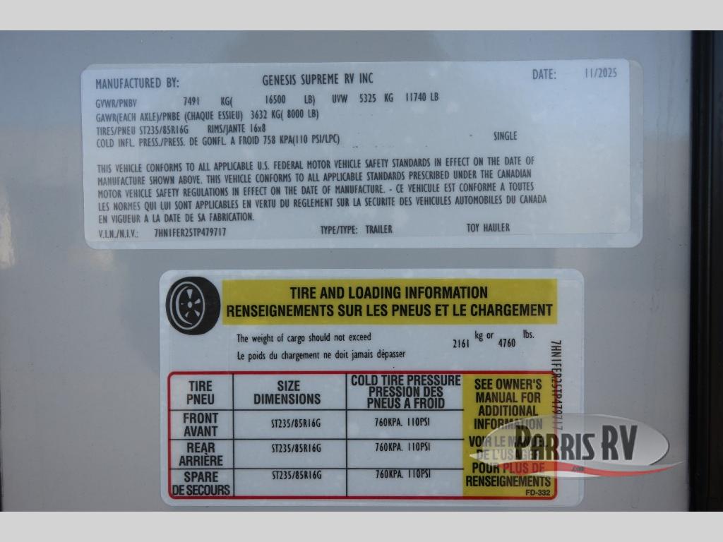 Genesis Supreme Rage'n fifth wheel toy hauler 3016RIKS highlights: