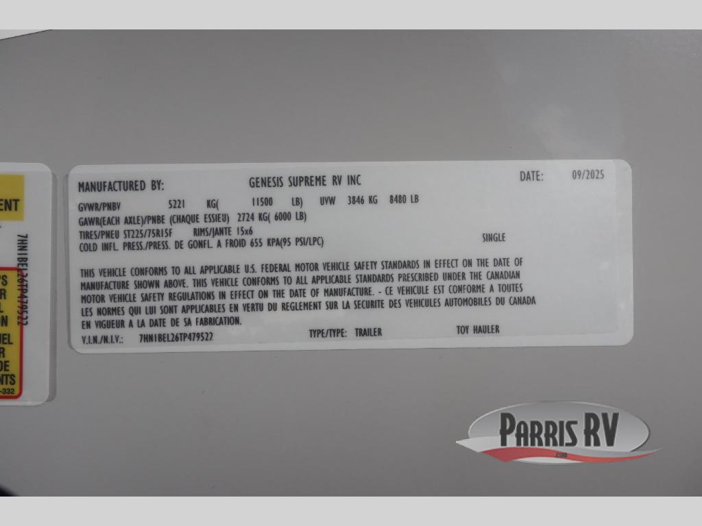 Genesis Supreme Rage'n toy hauler R2715FSXL highlights: