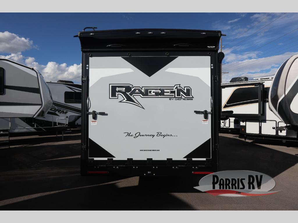 The Rage'n fifth wheel and travel trailer toy haulers by Genesis Supreme are the perfect match for outdoor enthusiasts. The innovative floorplans include many at-home features and conveniences to make each trip enjoyable. Loading up your toys will be easier than ever since there is a 102" wide-body design, and the durable construction means you can enjoy your toy hauler for years to come. There are many different features available, depending on the model you choose, plus available options to further customize your unit. Choose a Rage'n toy hauler today!