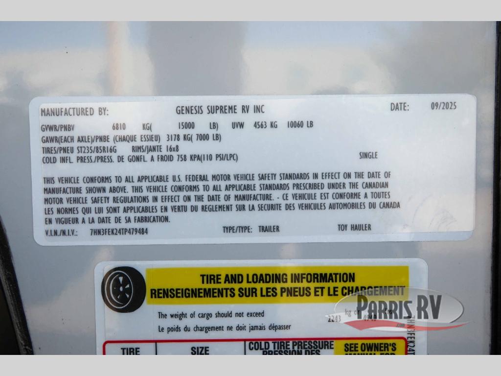 Fully Automatic Leveling Jacks!Genesis Supreme Vortex toy hauler 2815V highlights:
