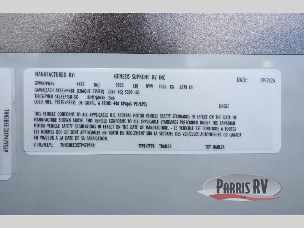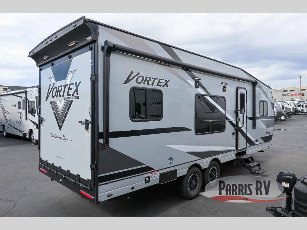 Get ready for adventure with the Vortex toy haulers by Genesis Supreme. The innovative floorplans provide you with everything you need for memorable trips. These models can withstand the extreme heat of the desert, while still keeping you comfortable inside. There are kitchen and bath amenities inside, along with ample storage space for your belongings. With a wide variety of floorplans to choose from, you're sure to find the Vortex that fits your needs best!