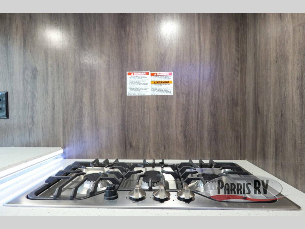 Your camping life is going to be a blast with the Genesis Supreme Vortex toy hauler! These work horses get the job done but also make it fun. You will be able to use the 40-gallon fuel station to gas up your toys when you come back from the trails, and the power awning with LED lights will give you protection as you use the exterior features. The 16" deluxe aluminum alloy wheels will get you to and from your destination with confidence, and the 30,000 or 35,000 BTU furnace will ensure that you don't freeze while you sleep on cool nights. You can keep power flowing with the 4.0kW generator with transfer switch, and you'll also enjoy the function and the style of the solid-surface countertops in the kitchen.